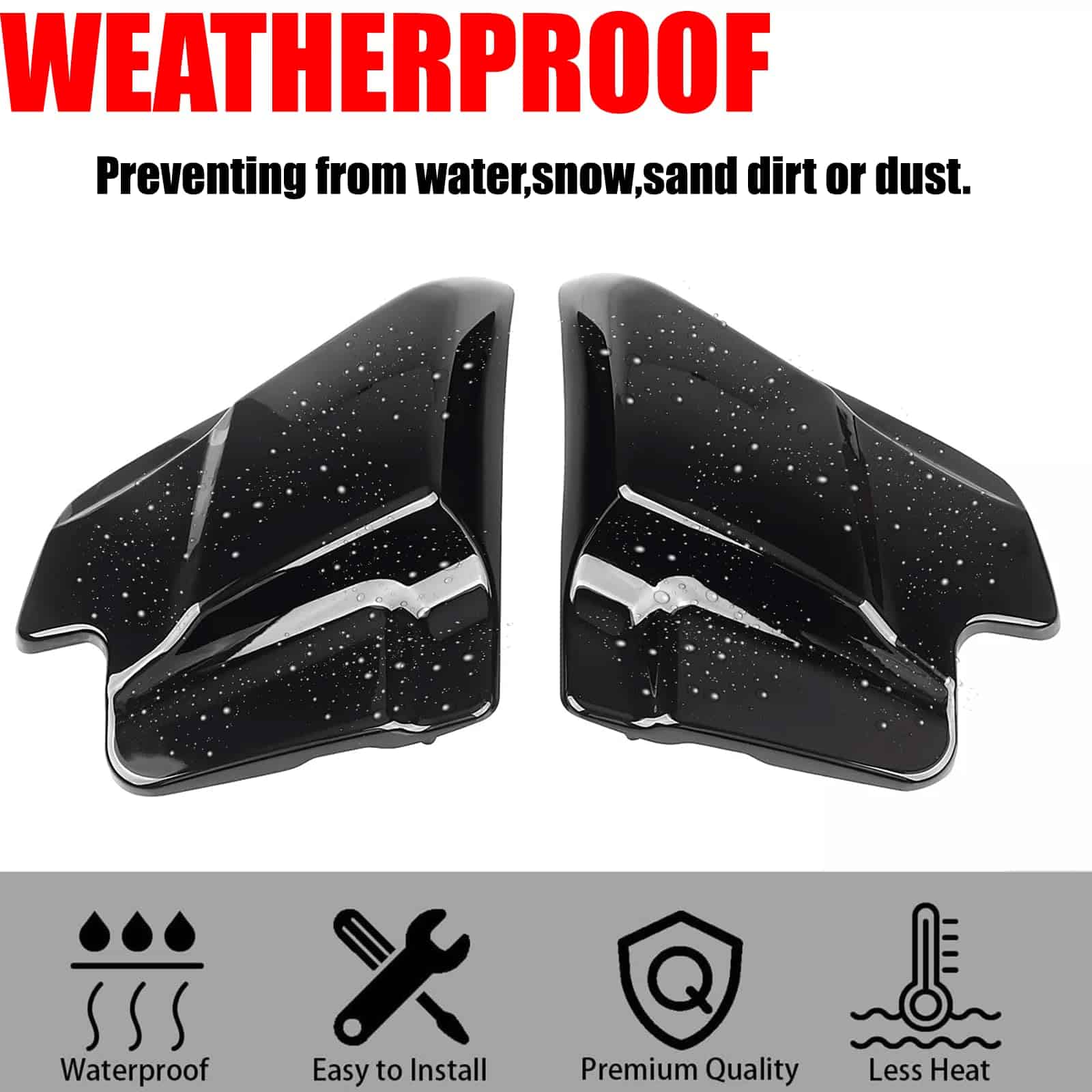 AJUSTE: Reemplazar 66048-09 & 66250-09, Aftermarket 100% nuevo. Cubierta lateral negra intenso para modelos Harley/Road King/Road Glide/Electra Glide/Street Glide/Touring ’09-2024. No compatible con CVO Street Glide FLHXSE ’23 en adelante, Street Glide FLHX ’24 en adelante. No compatible con CVO Road glide FLTRXSE ’23 en adelante, Road Glide FLTRX ’24 en adelante y CVO Road Glide ST FLTRXSTSE ’24 en adelante.