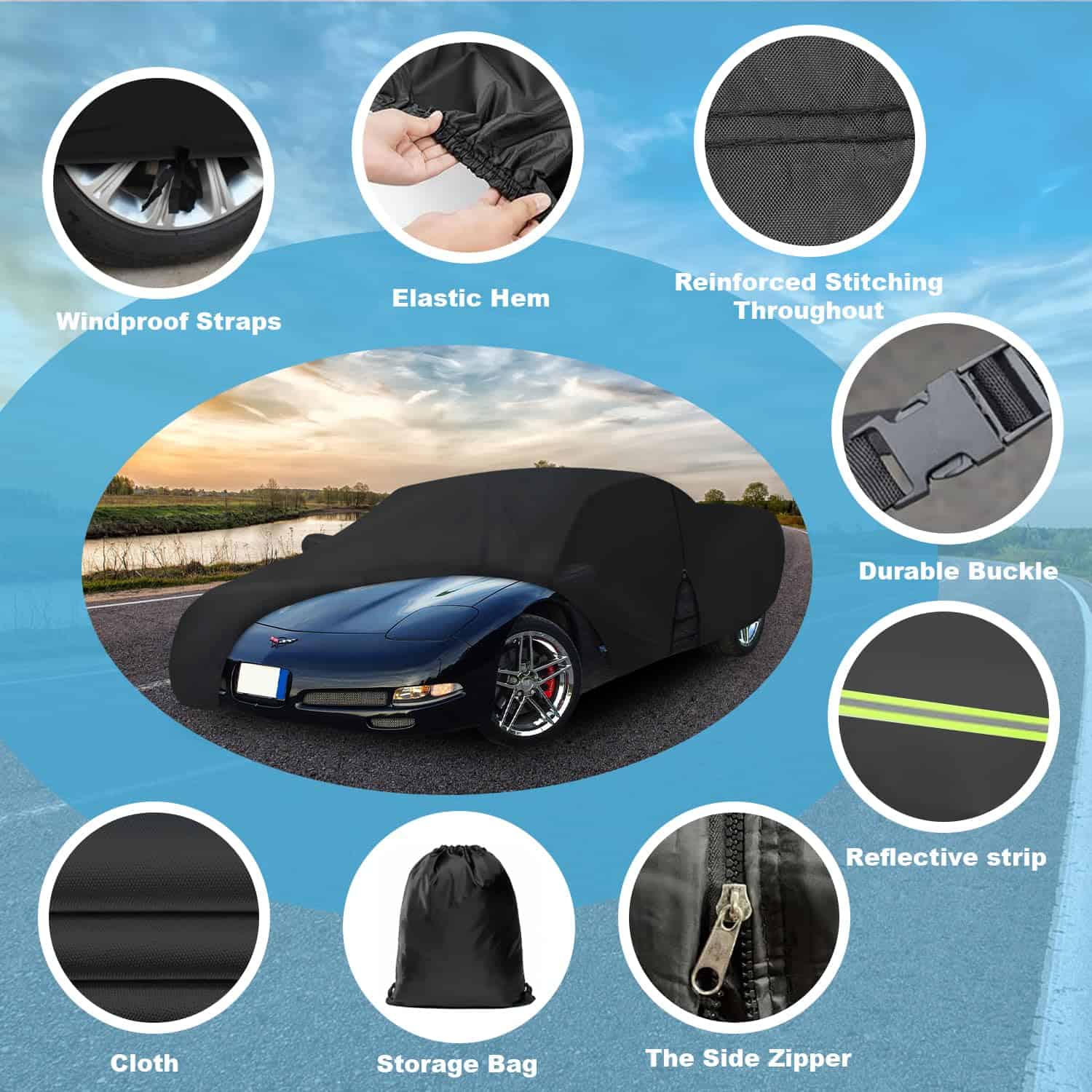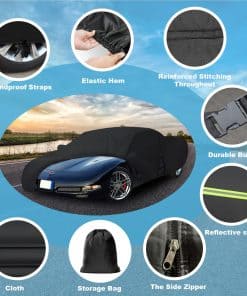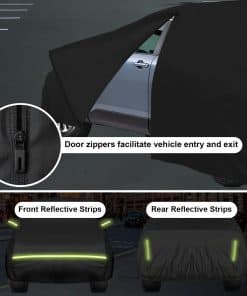 Esta cubierta para auto a medida es increíble. Es delgada, impermeable y proporciona una excelente protección para tu coche. Está fabricada con 7 capas de material de alta calidad, incluyendo una capa de aluminio reflectante para bloquear los rayos ultravioleta. El diseño resistente al viento incluye cremallera en la puerta izquierda, correas elásticas ajustables en la parte inferior y en las ruedas, así como bolsillos para los espejos. La cubierta está diseñada para proteger tu coche de todo tipo de condiciones climáticas adversas durante todo el año. ¡Obtén la tuya hoy!