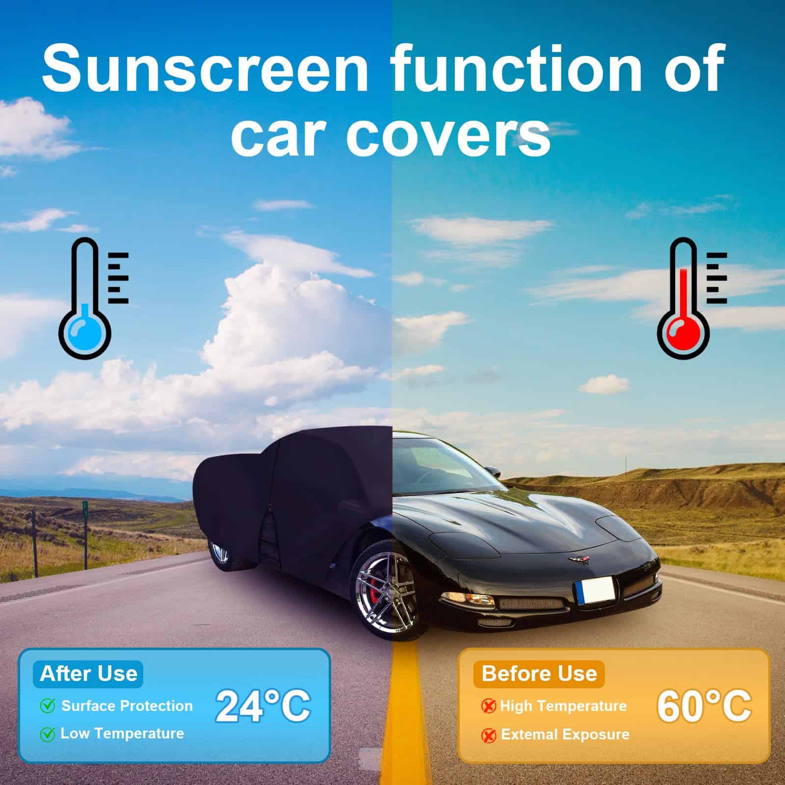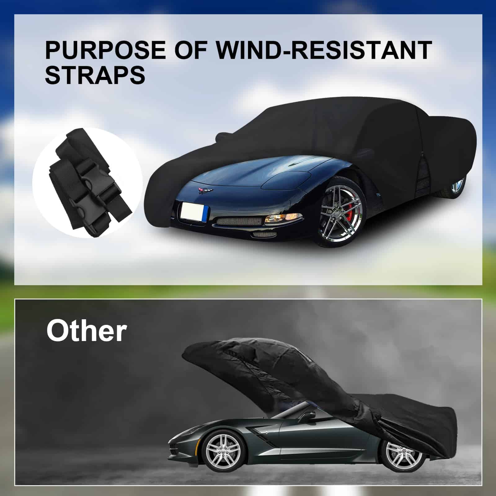 Cubierta del coche personalizada para Chevrolet Corvette C4 C5 C6 C7 C8 1980 2023. 7 capas de material de alta calidad, impermeable y resistente. Diseñada para resistir vientos fuertes. Protege tu coche de todas las inclemencias del tiempo durante las cuatro estaciones.