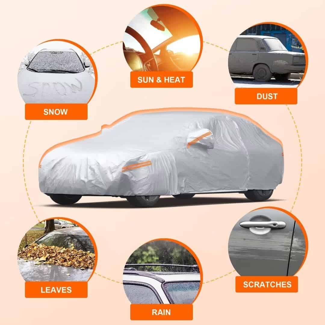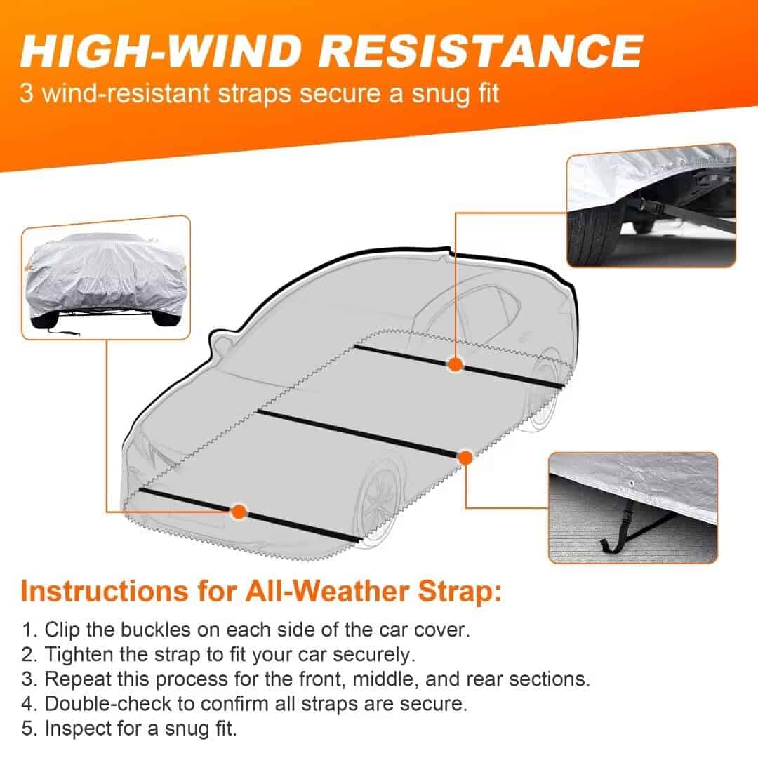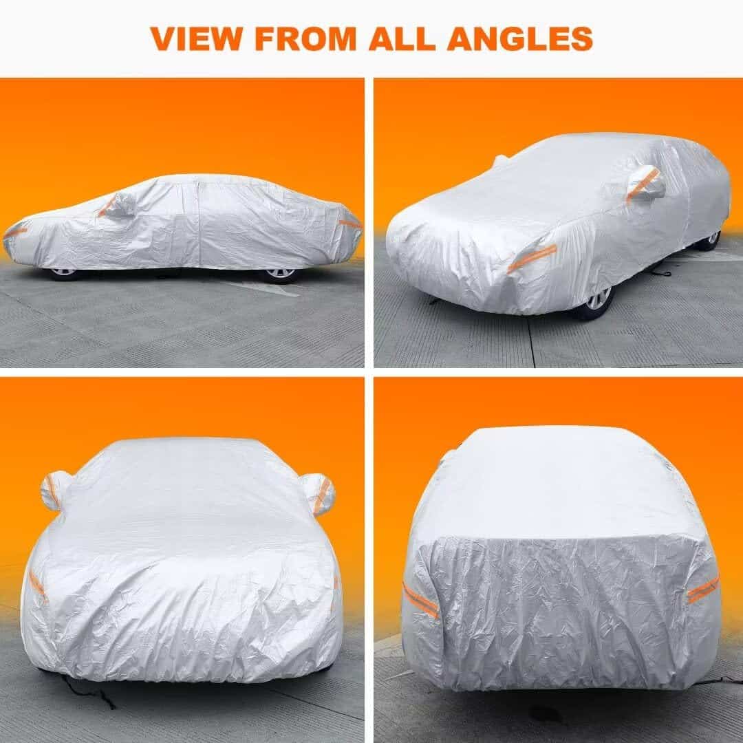 2. MATERIAL DURADERO: Unido y prensado con una capa UV duradera y resistente al rayado, con forro suave. Parte frontal y trasera con inserciones a prueba de viento para resistencia a la intemperie, protección de la pintura y una vida útil más larga.