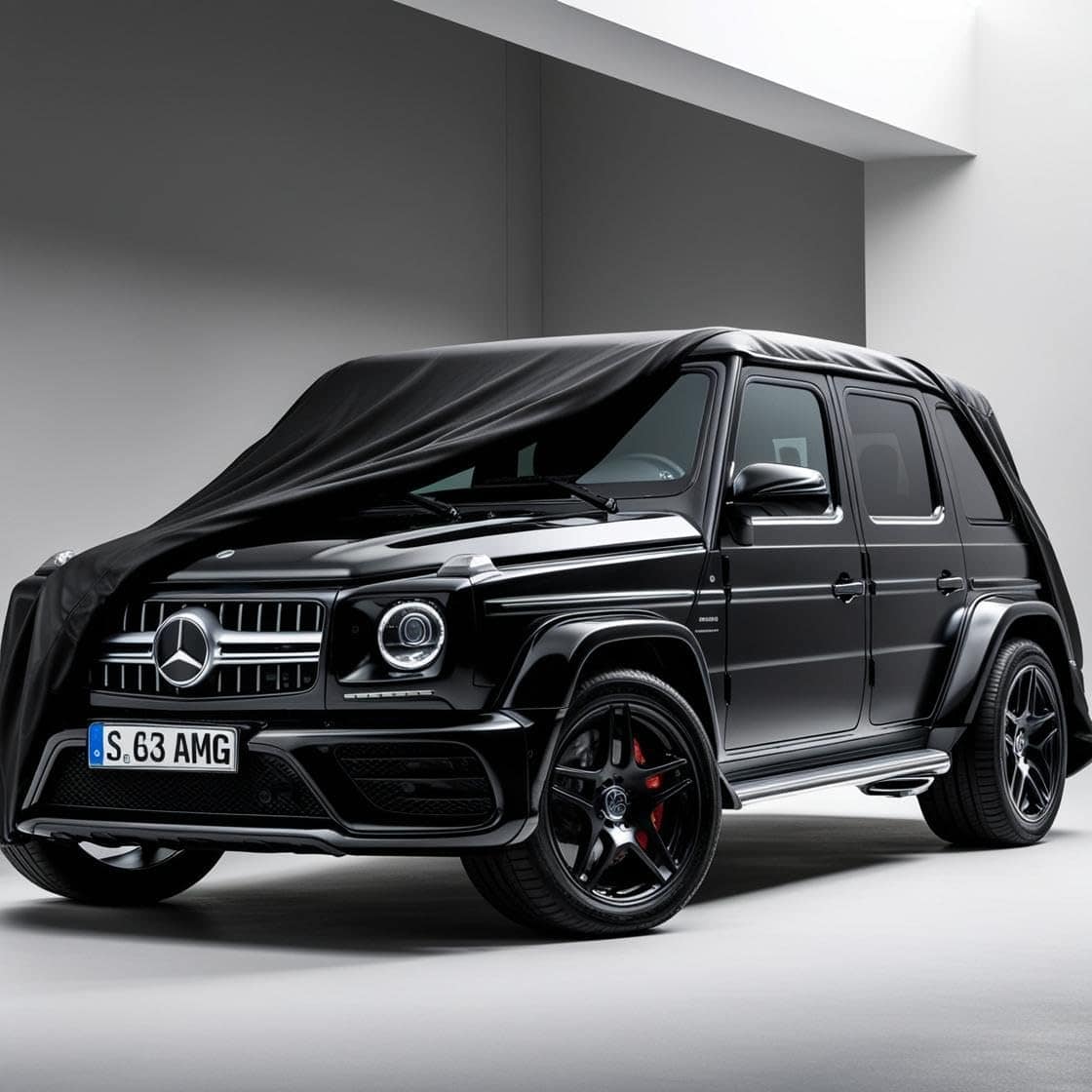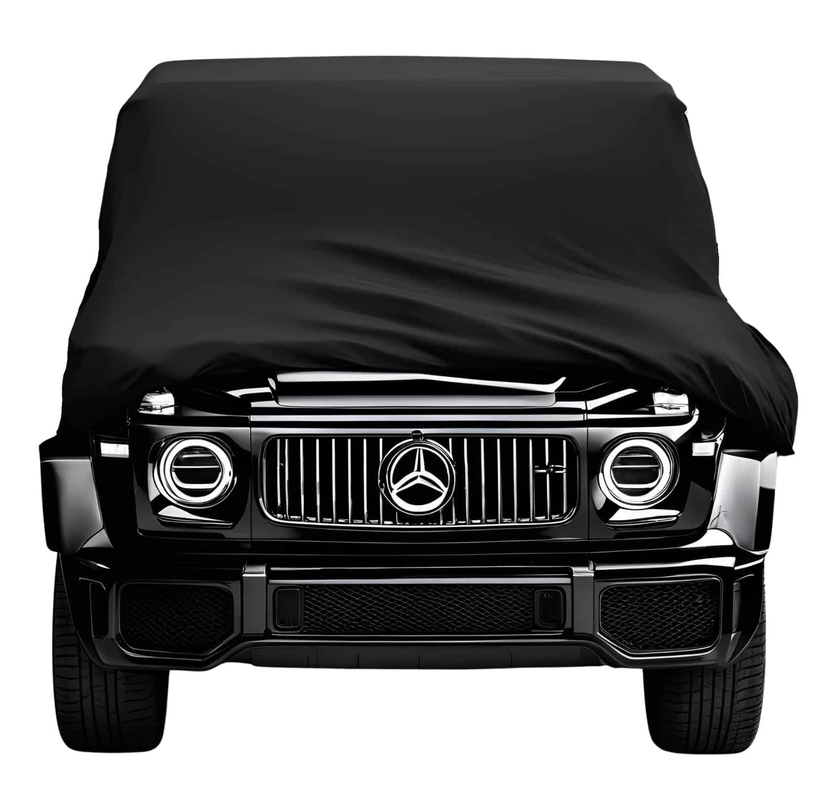 1. Cubierta negra de satén personalizada diseñada para adaptarse únicamente a los modelos G-class de 1990-2024 de 4 puertas.
