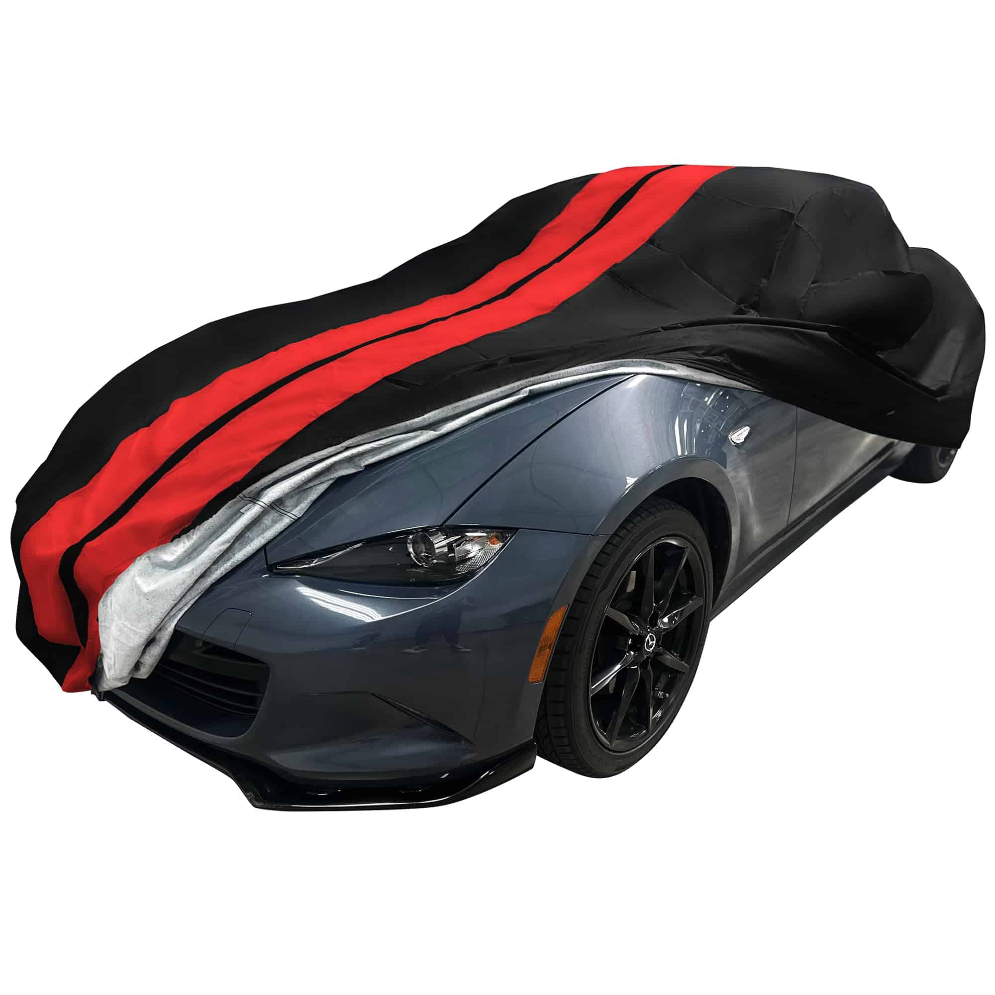 Para uso en exteriores, la Cubierta Ultraguard refleja eficazmente la luz solar y protege contra la lluvia y las deposiciones de animales que podrían dañar el acabado del vehículo. La capa interior de algodón suave protege los acabados de pintura más delicados, asegurando que su Miata se mantenga en óptimas condiciones.