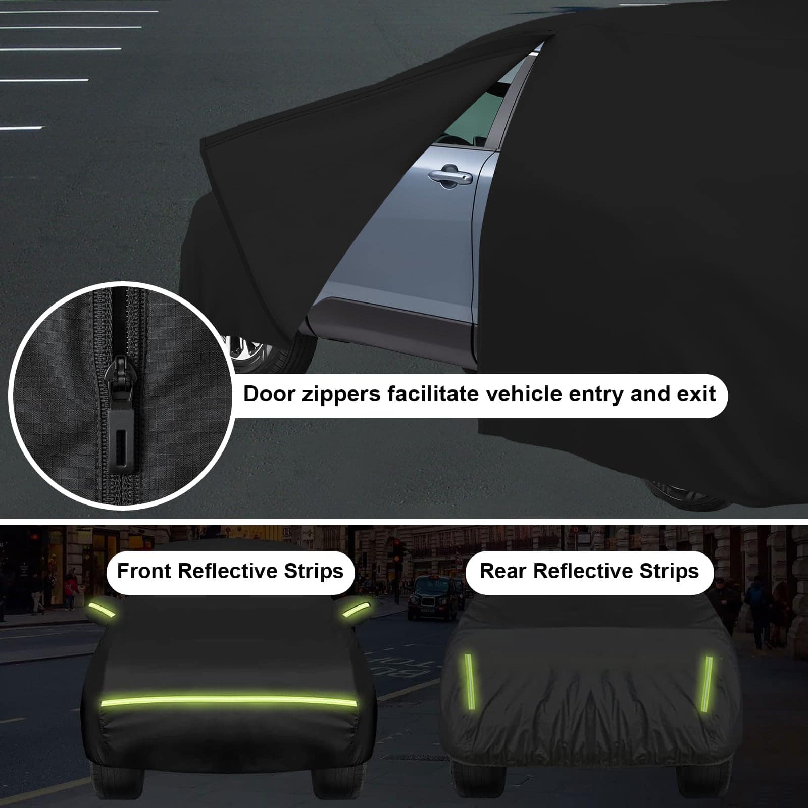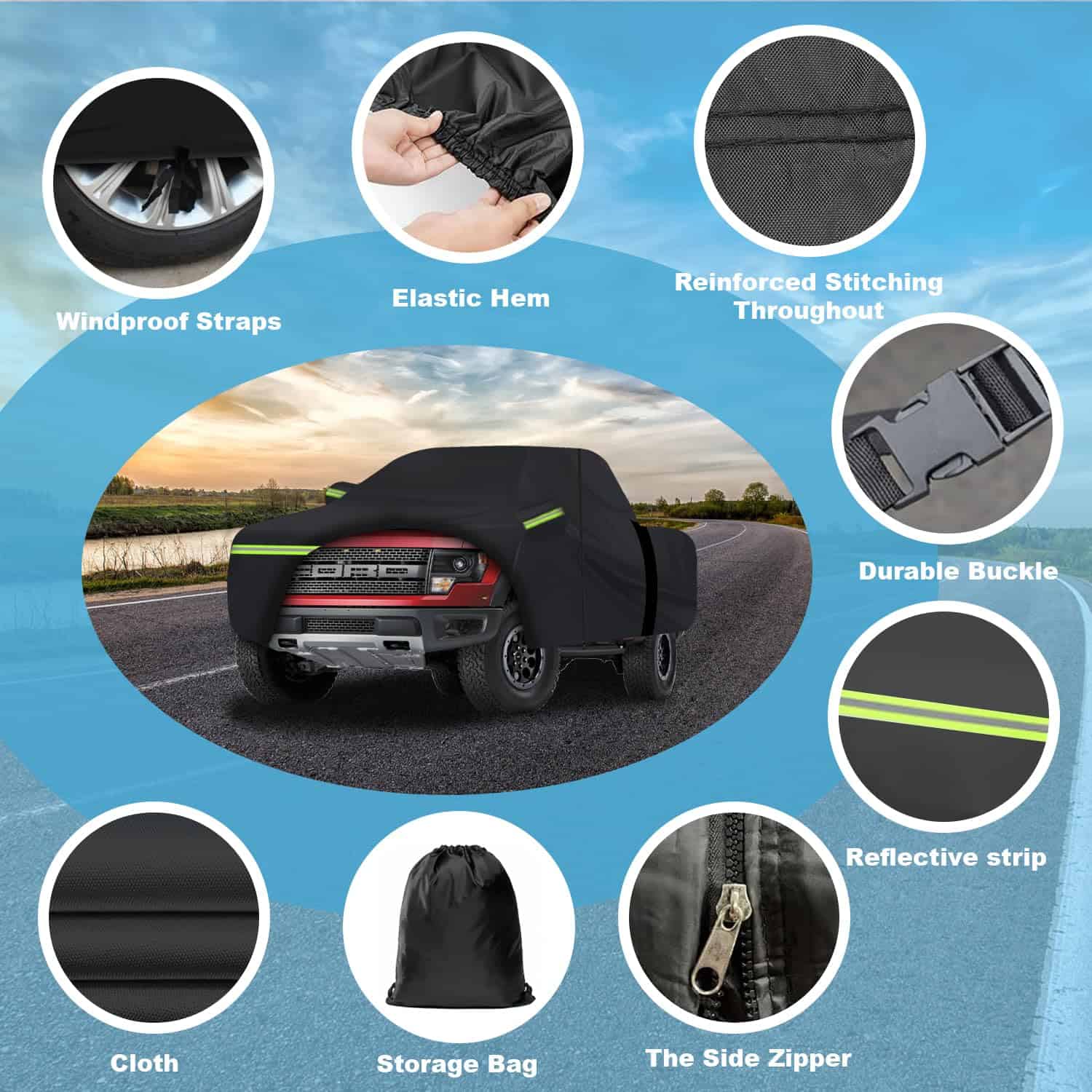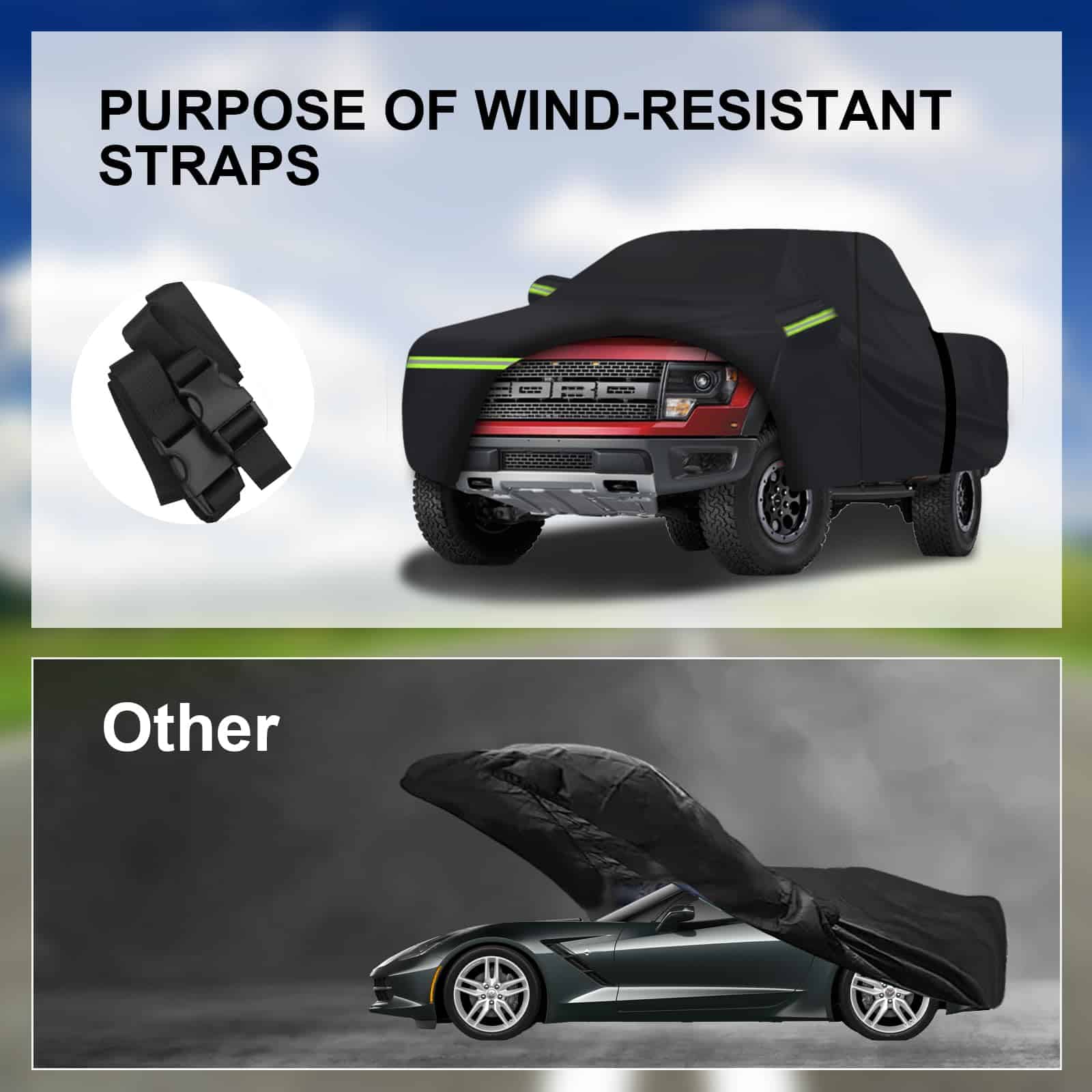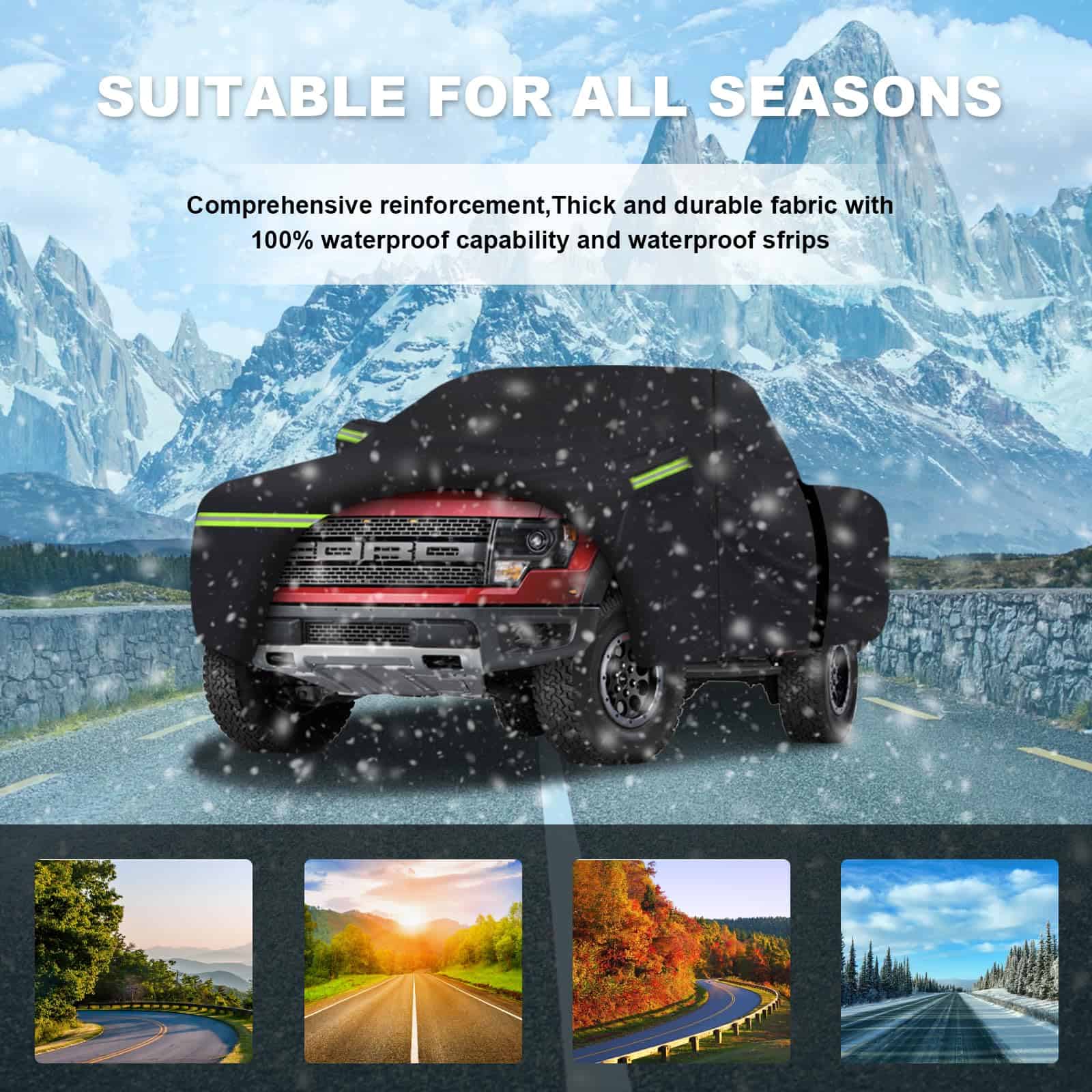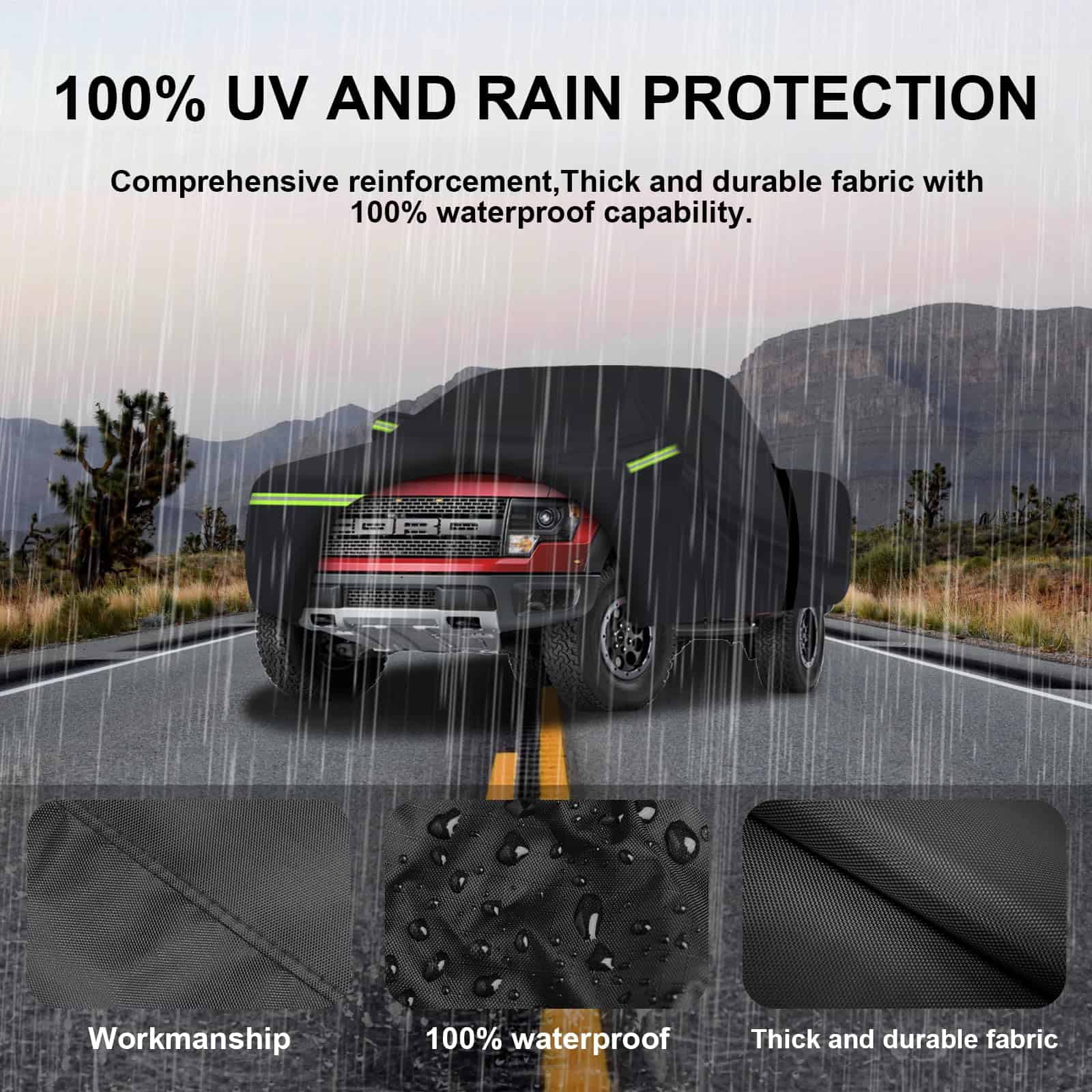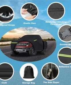 1. Modelo aplicable: ¡Esta Cubierta Impermeable para Autos para Ford F150 Silverado 1500 Ram 1500 Toyota Tundra es increíble! Cubiertas para camionetas (para Ford F-150, Toyota Tundra, Ram 1500, Chevy Silverado, GMC Sierra, Jeep Gladiator) Cubierta de auto201. ¡Cubierta para autos y más camionetas Van SUV Cubierta de autos (la longitud del cuerpo es de hasta 238 L, por favor mídela antes de comprar, o consulta al servicio al cliente. 2. Materiales de primera calidad: La cubierta para auto de 7 capas engrosada está hecha del último material pesado impermeable al 100%. La capa de aluminio de alta reflectividad más externa puede bloquear el 99.95% de los rayos ultravioleta (UPF50+). La tela superior está hecha de aluminio y forro polar de algodón, que refleja la luz del sol y mantiene su auto más fresco. La tela transpirable negra permite una ventilación adecuada. La capa media se ha mejorado para resistir una presión de agua de 2500 mm, y es 100% impermeable. 3. Diseño resistente al viento: La cubierta para autos ha sido especialmente diseñada para resistir fuertes vientos. (1) Cubierta para auto exterior completa con Cierre de Puerta en el lado izquierdo para un fácil acceso. (2) 2 correas a prueba de viento en la parte frontal y trasera media, dobladillos elásticos ajustables en la parte inferior y cuatro correas de rueda le permiten ajustar fácilmente el tamaño de la cubierta. (3) 6 tiras de luz fluorescentes para líneas reflectantes de advertencia de seguridad para proteger su auto para estacionar de manera segura por la noche. (4) Bolsillos de espejo bonitos que protegen perfectamente su espejo de daños. 4. Cubierta para autos todo clima: La cubierta para autos está diseñada especialmente para su auto para brindar protección integral. Proteja su auto de las cuatro estaciones de primavera, verano, otoño e invierno, como polvo, nieve, contaminación industrial, rayones, excrementos de pájaros, hojas, polen, lluvia ácida, rayos ultravioleta, luz solar intensa, lluvia fuerte, etc. 5. Lo que obtienes: 1 cubierta para auto, 1 bolsa de almacenamiento y 12 meses de soporte de producto. Como fabricante profesional de cubiertas para autos, WLDGQGE se compromete a hacer tu vida mejor. Si tienes alguna pregunta sobre la configuración y calidad de tu cubierta para auto, responderemos rápidamente para ayudarte.