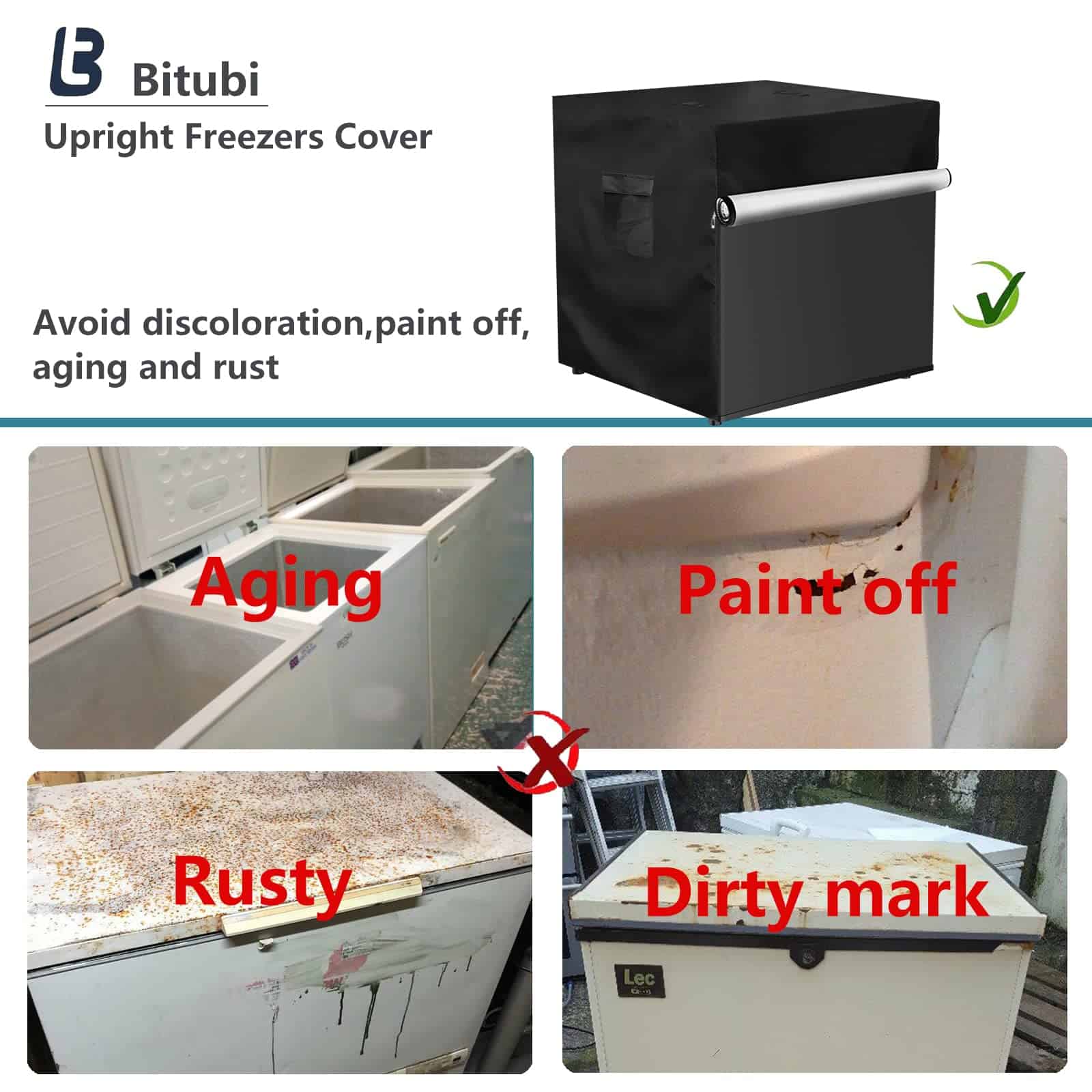 Contenido del paquete: 1 x Cubierta para Congeladores Verticales, 1 x Bolsa de Almacenamiento