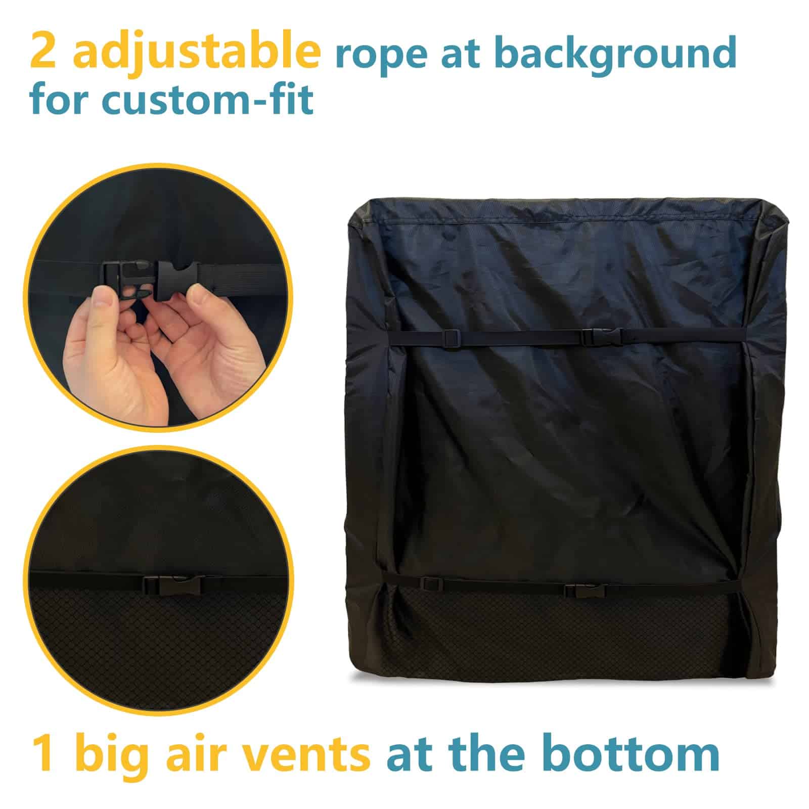 2. DISEÑO MEJORADO – Nuestra cubierta está diseñada con cremallera y velcro, lo que le permite abrir la máquina sin quitar la cubierta, simple y conveniente. Hay una gran ventilación en la parte inferior de la parte posterior, para que pueda mantener la máquina refrigerando.