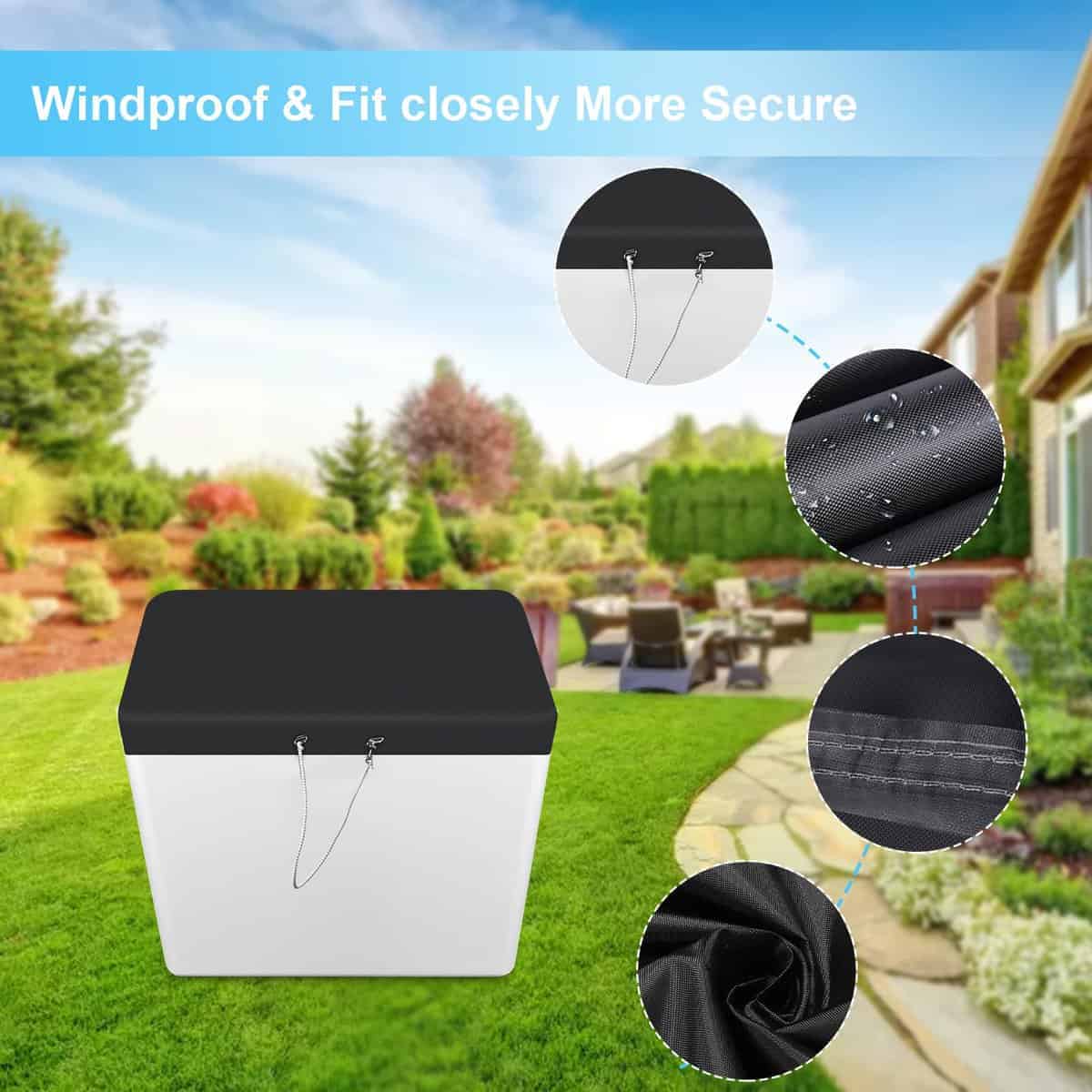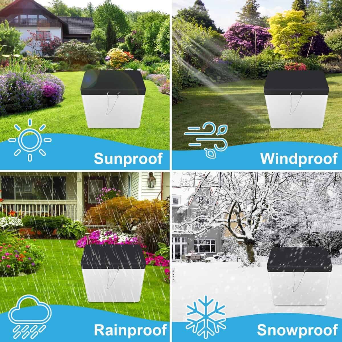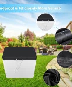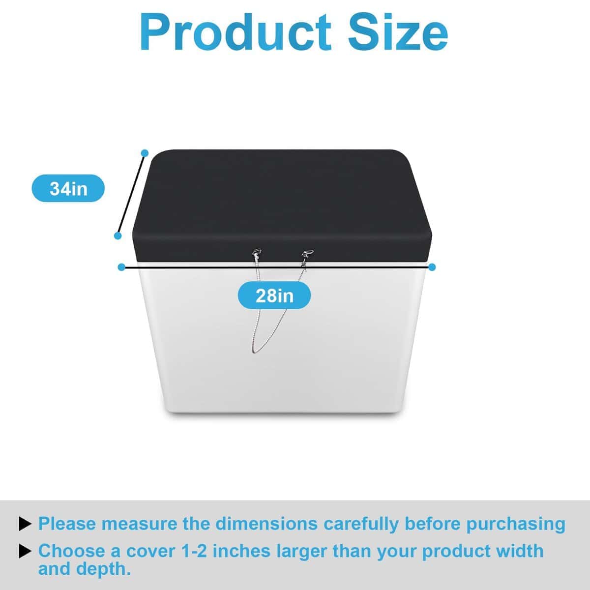 Cubierta para cubeta de vinil WLDGQGE, piezas para camión de cubeta cubierta pesada con banda elástica y bolsillo de soporte y anillo D, se adapta a cubeta de 2 personas (28*34in). La cubierta está hecha del último paño de Oxford 600D resistente al 100%. La costura aplicada con pegamento, las correas de costura duraderas. Es resistente al agua, UV y a los desgarros. Esto significa que sus cubetas obtienen la máxima protección ya sea en interiores o exteriores. No se preocupe por que la cubierta se rompa y salga volando durante el transporte. Esta cubierta impermeable está diseñada para cubetas de dos personas con una medida de borde a borde de 28 x 48 pulgadas. Si piensa que el tamaño del borde de su cubeta es de Hasta 28″L 28″W, puede usar esta cubierta para cubeta, por favor mídala antes de comprar, o consulte al servicio al cliente. La cubierta tiene un bolsillo de soporte, banda elástica y correa de seguridad D-ring. La cubierta se mantiene en su lugar mediante una correa elástica que va alrededor de la abertura de la cubeta bajo el borde que luego se ajusta con una hebilla. Al final de la correa hay un clip de anillo D que puede usar como medida de seguridad adicional o mientras la cubeta está en uso. Abra el paquete y colóquelo directamente encima. Puede insertar un tablón de madera de 1×4 pulgadas debajo de la cubierta de la cubeta para que no se colapse fácilmente si se acumula agua de lluvia, nieve o escombros en la parte superior. La inserción del tablón de madera no está incluida en su compra. La cubierta tarda menos de un minuto en instalarse y se quita en segundos. Lo que obtiene: 1 cubierta para cubeta, 1 bolsa de almacenamiento y 12 meses de soporte de productos. Como fabricante profesional de cubiertas para muebles de exterior, WLDGQGE se compromete a hacer su vida mejor. Si tiene preguntas sobre la instalación y calidad de su cubierta de vinilo para cubeta, responderemos rápidamente para ayudarlo.