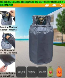 La cubierta para tanque de propano de 30 lb está bien hecha para cubrir completamente el tanque de propano expuesto para una excelente protección. La cubierta para tanque de propano tiene un cordón ajustable en la parte inferior de la cubierta, y el diseño de cobertura del 100% proporciona protección total contra el sol, la lluvia, el granizo, la nieve, el polvo, etc., ¡así que tu tanque de propano siempre lucirá como nuevo y durará más tiempo! Más innovaciones y detalles están diseñados para proteger mejor tus tanques de propano. La cubierta para tanque de propano está diseñada con un trozo de material transparente que se puede levantar en la válvula de regulación, lo que facilita la apertura y cierre de la válvula y ver el barómetro sin quitar la cubierta.