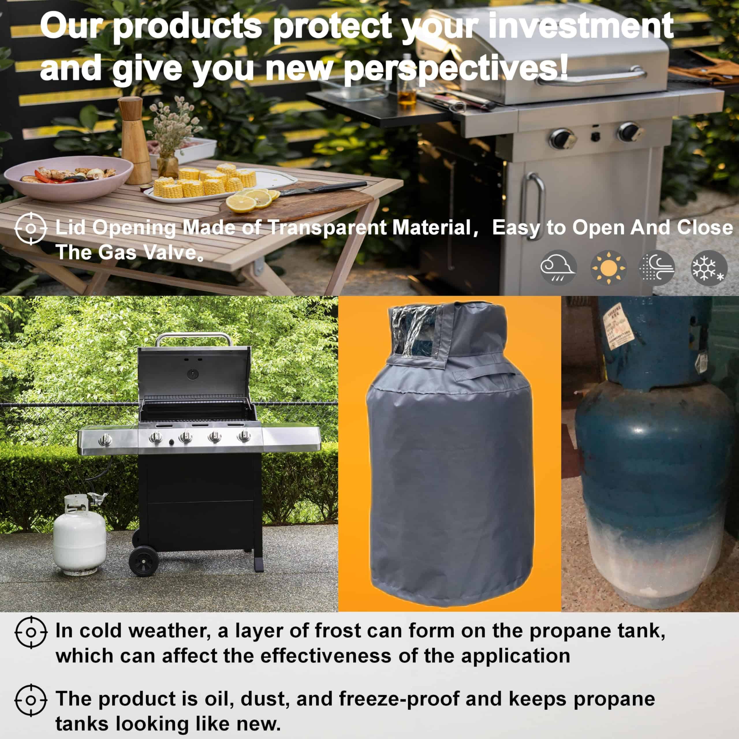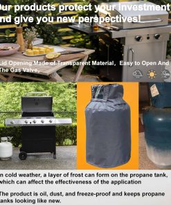 La cubierta para tanque de propano de 60 lb con tela Oxford 600D impermeable, a prueba de polvo y grasa es la solución perfecta para proteger su tanque de propano al aire libre de los elementos climáticos. Con su material duradero y resistente, esta cubierta asegura que su tanque de propano esté protegido del sol, la lluvia, la nieve, el polvo y más. La abertura superior facilita la inspección visual de la válvula de tanque de propano sin tener que quitar la cubierta. Además, el diseño ajustable con cordón en la parte inferior garantiza un ajuste seguro y cómodo alrededor del tanque. No deje su tanque de propano expuesto a los elementos, invierta en esta cubierta de alta calidad y prolongue la vida útil de su tanque de propano.