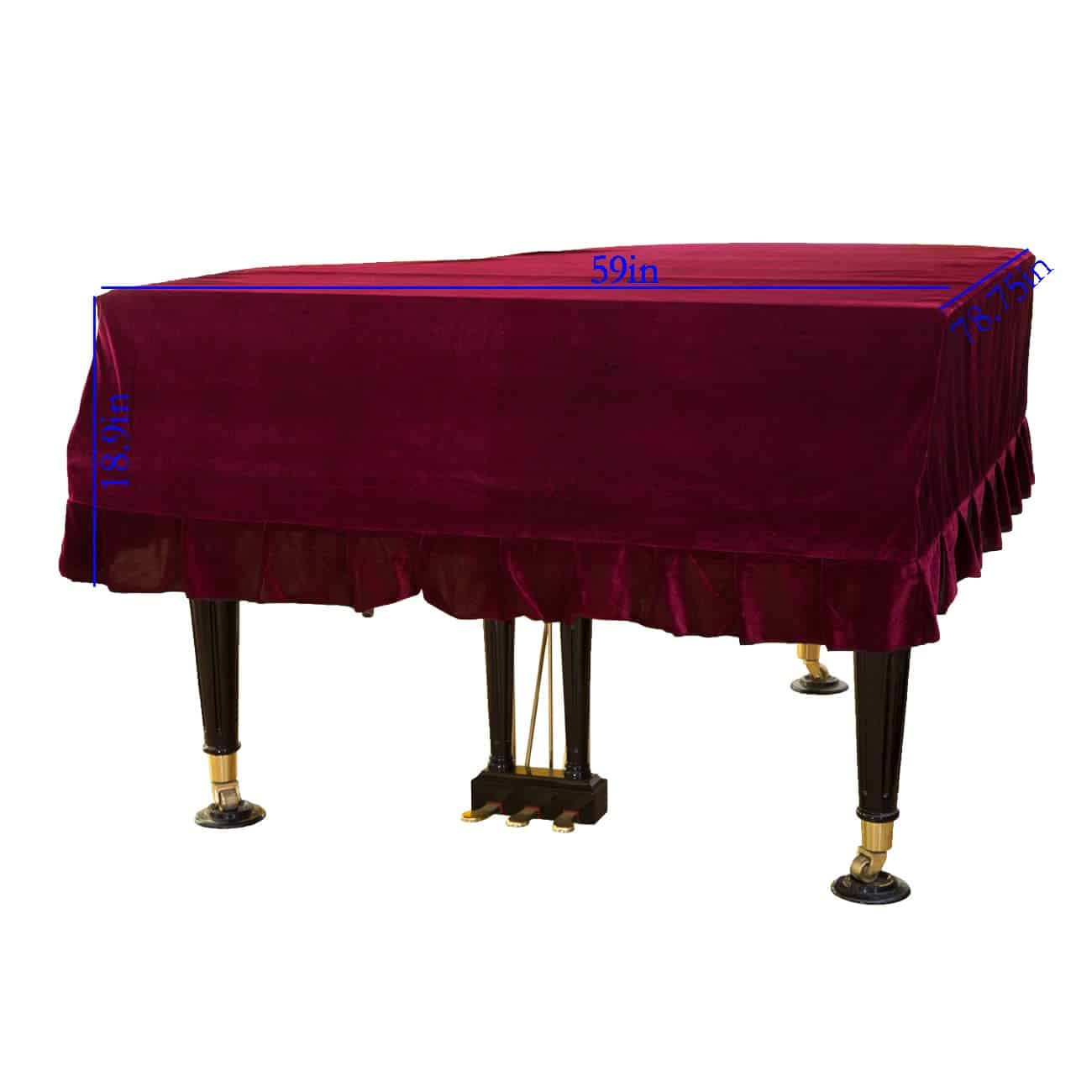 Material: Terciopelo. Color: Negro, Rojo, Morado. Tamaño: Longitud: 78.75in, Ancho: 59in, Altura: 18.9in. Esta cubierta de piano de cola solo es adecuada para pianos con una longitud total inferior a 78.75in. El piano y la silla no están incluidos. El color del artículo puede variar ligeramente en las fotos debido a la iluminación. Asegúrate de que la cubierta sea adecuada para tu piano antes de comprarla.