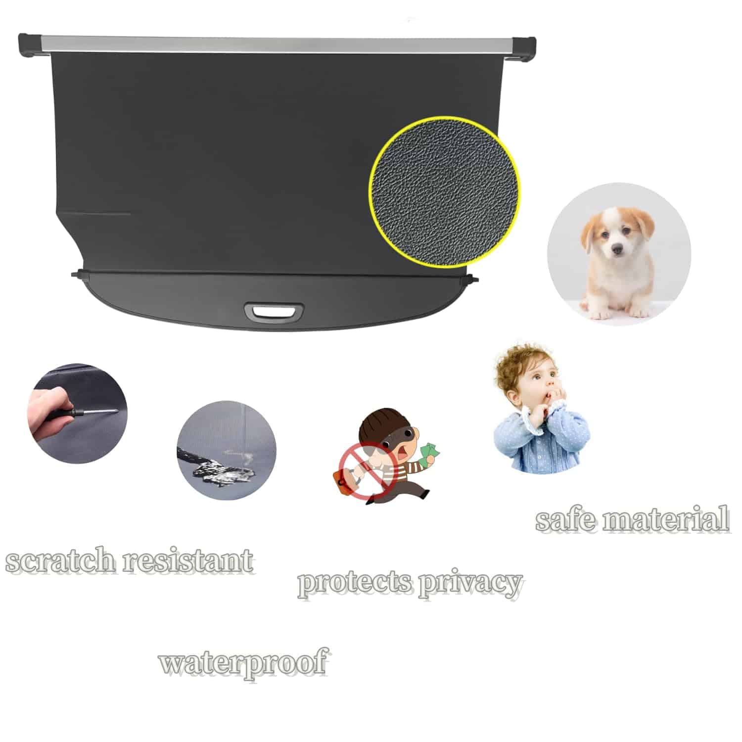 La cubierta de carga retráctil VESUL es compatible exclusivamente con Kia Sportage 2017-2022. Hecha con materiales de alta calidad, la barra principal está fabricada en aleación de aluminio más grueso, lo que la hace más resistente y duradera. La pantalla de carga está hecha de lona resistente al agua, resistente al desgaste y fácil de limpiar. Su instalación es muy sencilla, sin necesidad de taladrar; simplemente inserte el extremo izquierdo de la cubierta en el hueco izquierdo y luego comprima la cubierta para instalar el extremo derecho en el hueco derecho. Diseñada según la radián original del vehículo, encajará perfectamente en el maletero.