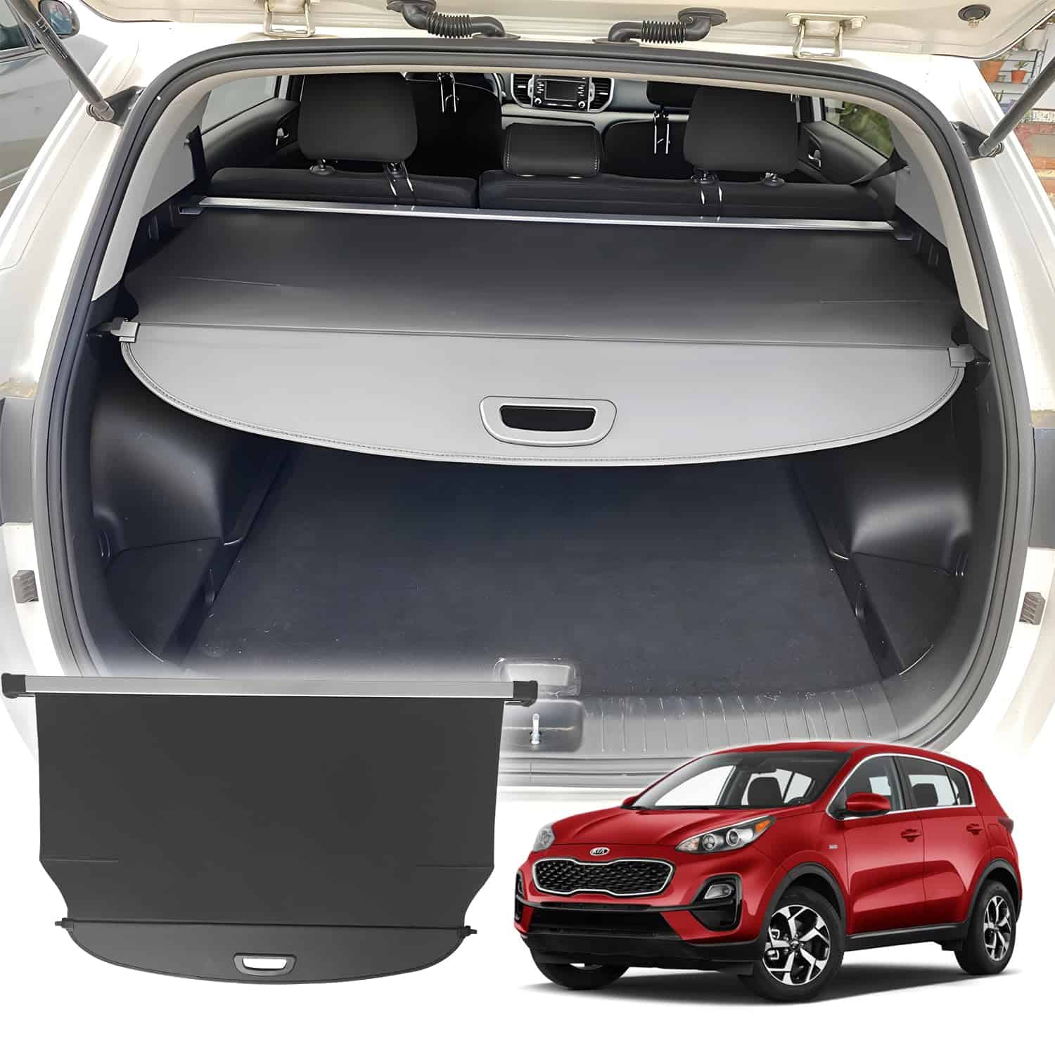 1. Compatibilidad: Compatible con Kia Sportage 2017 2018 2019 2020 2021 2022 solamente; NO es compatible con 2023 SPORTAGE. 2. Aplicación: Proteja sus pertenencias de los dañinos rayos UV; Oculte sus objetos de valor y privacidad bajo la pantalla extendida de carga, asegure la seguridad de sus objetos valiosos; Separe la sala de pasajeros y el área de carga, haga que sea más rápido calentar/enfriar; Proporcione un espacio de almacenamiento más grande, los paquetes livianos podrían cargarse en la pantalla de carga extendida.