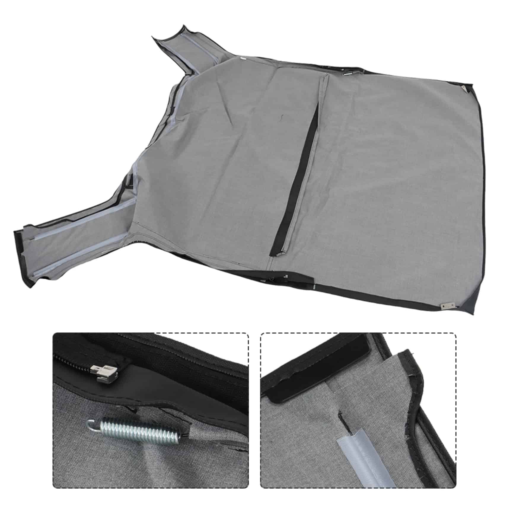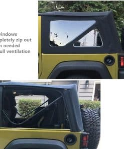 Cubierta suave hecha de tela recubierta de vinilo de grado marino es duradera, resistente a la decoloración, sus ventanas tintadas hechas de vidrio flexible prensado y pulido se pueden abrir completamente cuando sea necesario para una ventilación total, sus cremalleras reforzadas de corrección automática en las ventanas traseras funcionan de manera más suave y duradera, puedes abrir completamente la ventana cuando sea necesario para una ventilación total, por último, es fácil de instalar
