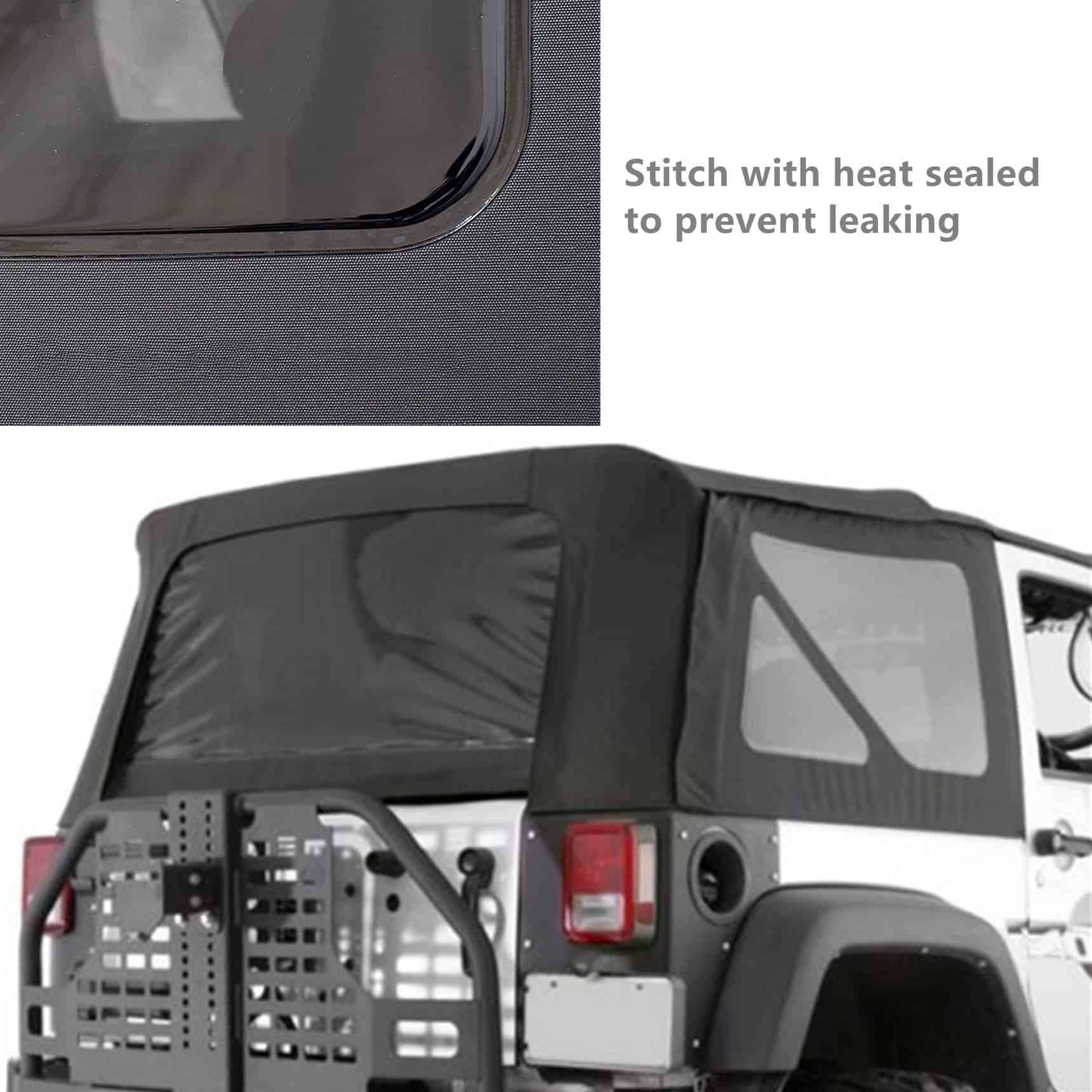 Cubierta Suave con Ventanas Traseras Tintadas Color Negro Diamante de Repuesto para Wrangler JK de 2 Puertas 2010-2017