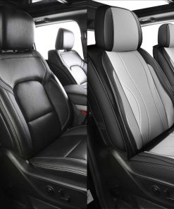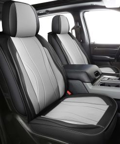 Cubiertas de asiento LINGVIDO F-150 diseñadas para adaptarse a los modelos de camionetas Ford F-150 2009-2025 Regular, Super Cab y SuperCrew, como XL, XLT, LARIAT, KING RANCH, PLATINUM, LIMITED, STX, FX4, FX2, TREMOR. También son compatibles con «F250 F350 F450» que tienen un tamaño de asiento similar. El diseño incluye espacio suficiente para airbags y ranura para cinturón de seguridad, sin interferir con su funcionamiento durante una emergencia. El cuero sintético de alta calidad es duradero e impermeable, con dispersión de esponja de alto rebote para mayor comodidad. La capa inferior antideslizante asegura que las cubiertas permanezcan en su lugar durante su uso. Fáciles de instalar siguiendo el video de instalación provisto.