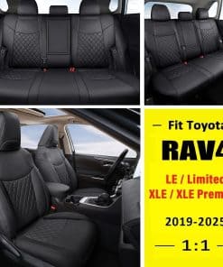 GIANT PANDA le ofrece un juego completo de cubiertas de asiento de coche de cuero PU a medida para los modelos Toyota RAV4 LE, XLE, XLE Premium, Limited (No híbrido & Adventure,TRD-Off Black) fabricados entre 2019 y 2025. Estas cubiertas de asiento personalizadas se adaptan perfectamente a los asientos originales, proporcionando una solución perfecta y rentable para actualizar el interior de su vehículo. Hechas de piel sintética suave, estas cubiertas de asiento ofrecen un tacto cómodo, buena transpirabilidad, durabilidad, resistencia al agua y facilidad de limpieza. Además, están diseñadas para proteger los asientos originales del desgaste, las manchas y el pelo de animales, al mismo tiempo que le dan a su coche un aspecto renovado. Tanto la cubierta del asiento delantero como la trasera presentan un diseño acolchado con forma de diamante y decoración de costuras, que le aportan una visión estereoscópica rica, simple y elegante, integrándose perfectamente con el interior de su coche. El paquete incluye instrucciones detalladas para una instalación sencilla. Las cubiertas de asiento a medida de GIANT PANDA cuentan con una fl…