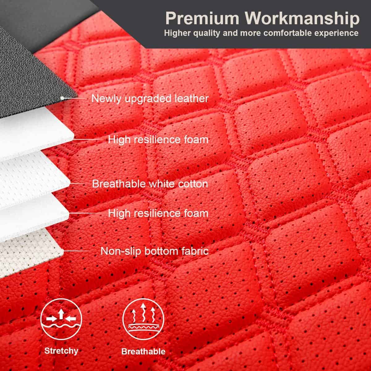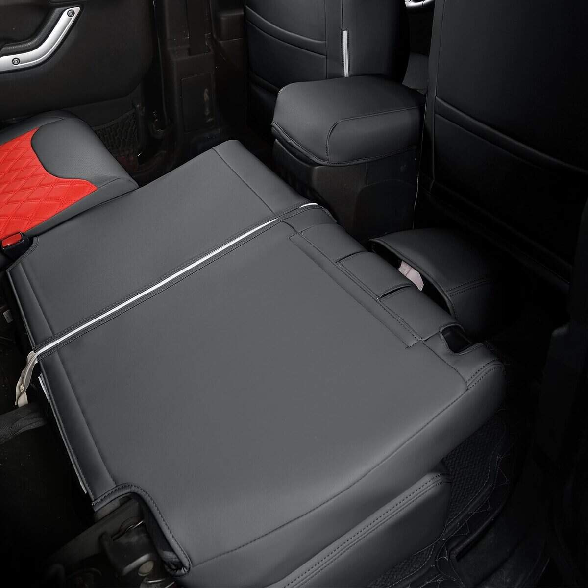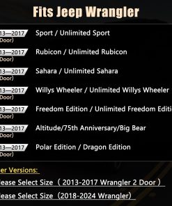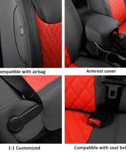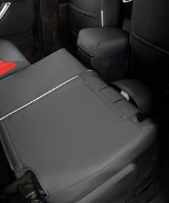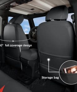 Un juego completo de cubiertas de asiento personalizadas de GIANT PANDA para Jeep Wrangler JK 4 puertas 2013 2014 2015 2016 2017. Estas cubiertas de asiento de coche están hechas de piel sintética suave, cómoda al tacto, resistente al desgaste, impermeable y fácil de limpiar. Diseñadas para adaptarse exactamente al tamaño original de los asientos del coche, protegerán los asientos originales de desgaste, manchas y cabello de animales, y le darán a tu interior de coche un aspecto nuevo. Tanto la cubierta del asiento delantero como la cubierta del asiento trasero muestran una rica visión estereoscópica con un diseño acolchado de rombos y decoración de costuras, sencillo y elegante, y se puede integrar perfectamente con el interior de tu coche. Para una instalación más sencilla, las cubiertas de asiento personalizadas de GIANT PANDA vienen con solapa, Velcro, hebillas resistentes y correas para un ajuste más apretado, seguro y una instalación más fácil.