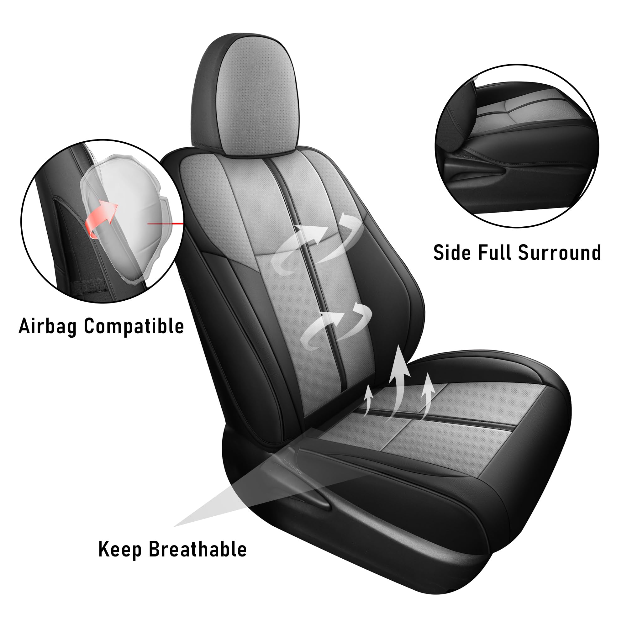 3. MANTENER LA FUNCIONALIDAD: Las fundas de asiento mantienen la función y control completos del asiento, como no afecta el uso de la bolsa de aire, reposabrazos, cinturón de seguridad y ajustes del asiento.