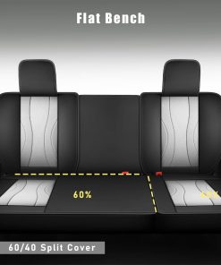 2. Material de cuero sintético de primera calidad: El cuero sintético de alta calidad hace que el producto sea duradero, elegante y protege sus asientos originales del polvo, la suciedad, el pelo de perro y los rayos UV. Resistente al desgaste y fácil de limpiar.