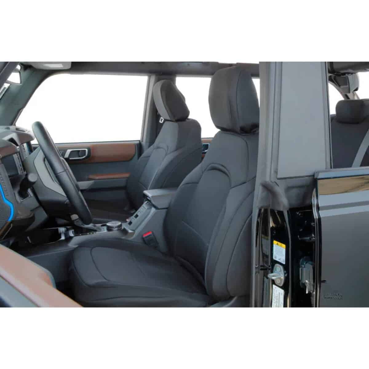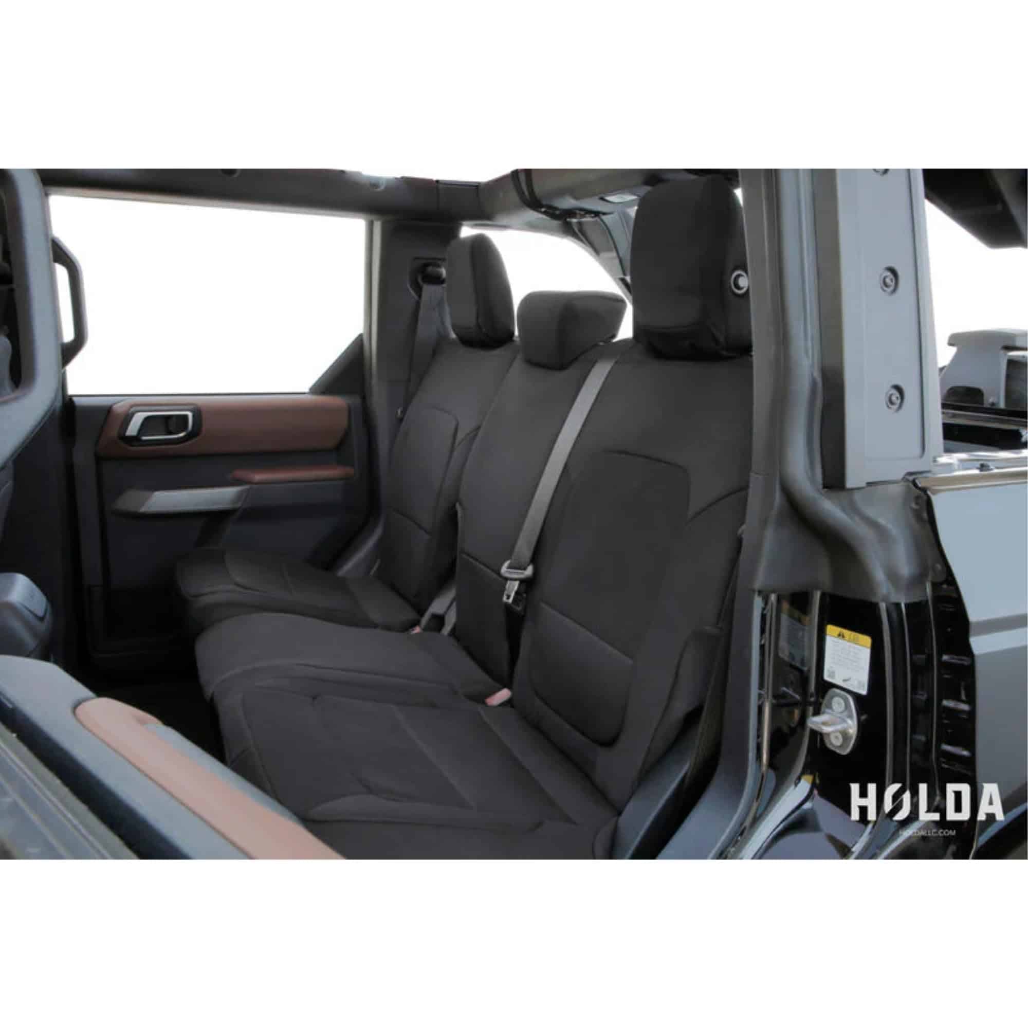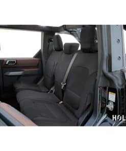 Actualice su Ford Bronco de 4 puertas con las Cubiertas de Asiento de Neopreno a Medida de Holda, diseñadas para brindar máxima protección, comodidad y estilo. Estas cubiertas premium resistentes al agua protegen sus asientos de derrames, suciedad y desgaste diario al tiempo que proporcionan una sensación suave y acolchada para mayor comodidad. El diseño a medida garantiza un ajuste perfecto, coincidiendo con los contornos y las costuras del asiento de su Bronco para un aspecto elegante y similar al de fábrica. A diferencia de las cubiertas de asiento universales, estas mantienen la funcionalidad completa del asiento, incluida la compatibilidad con airbags y el acceso al almacenamiento.