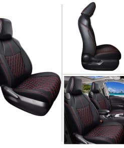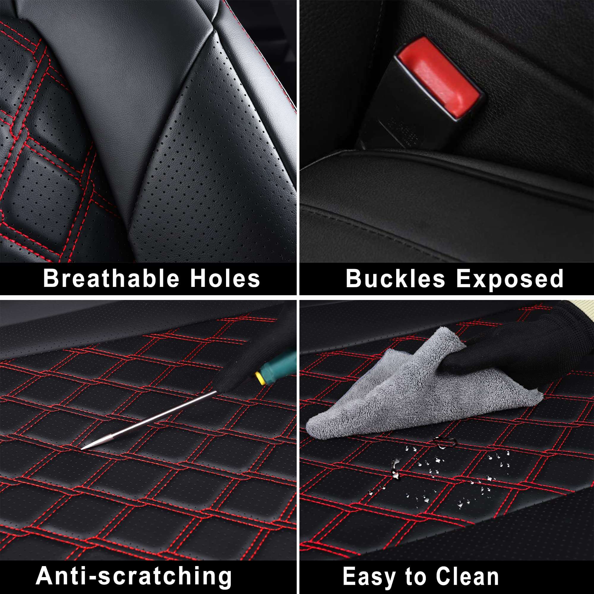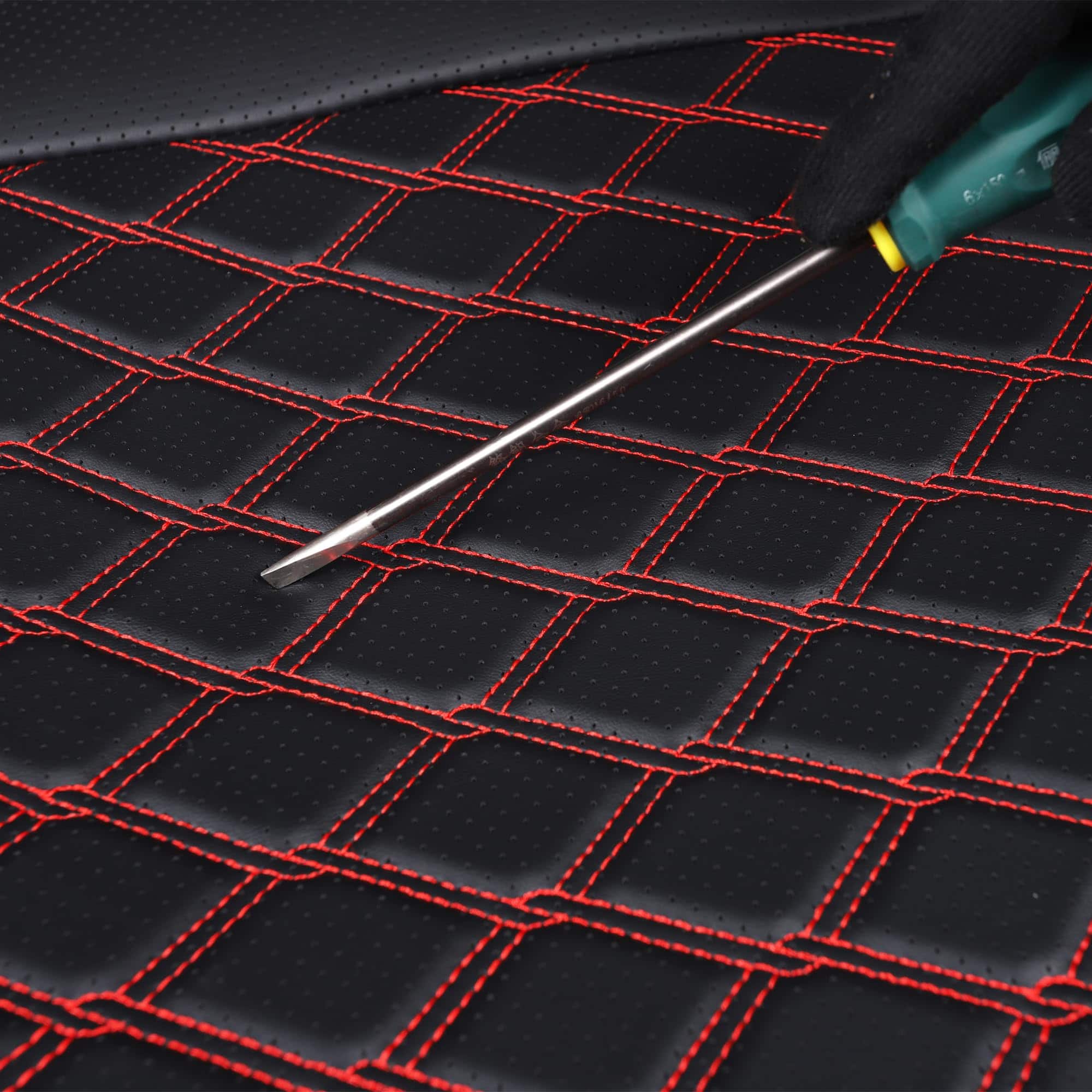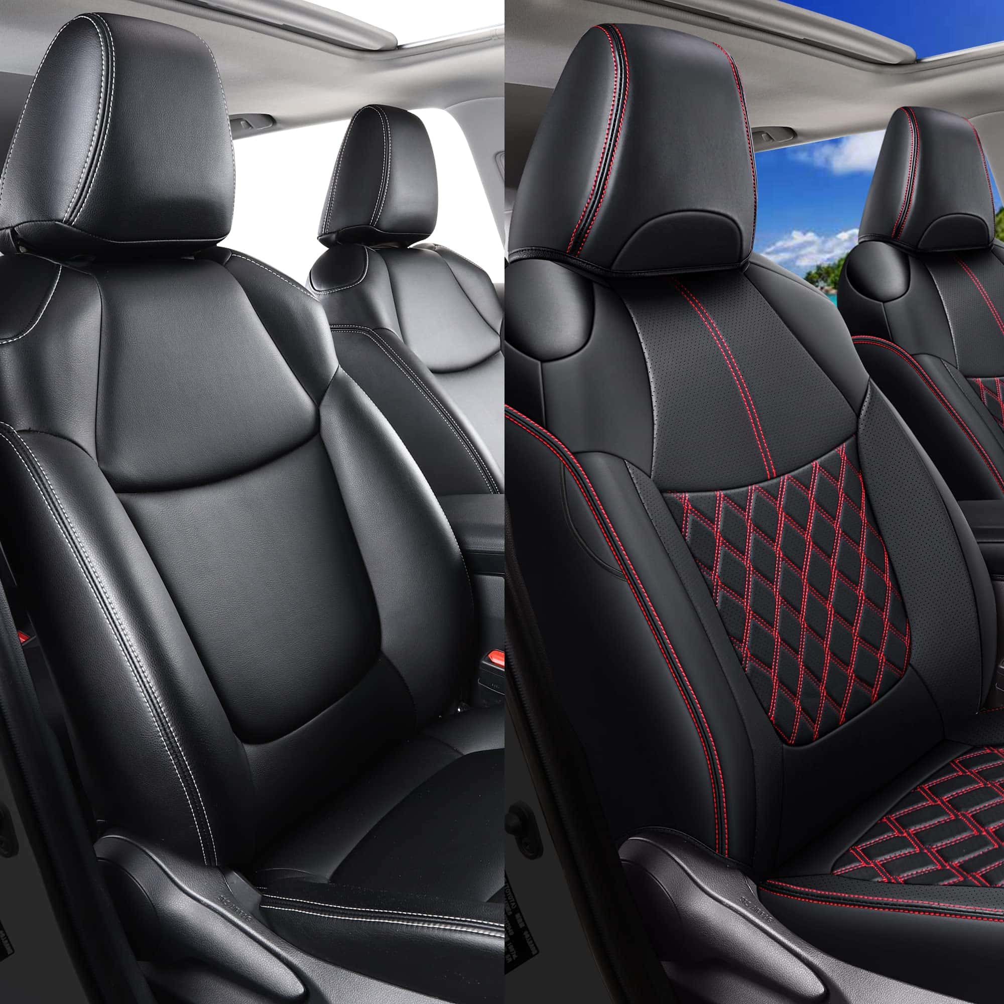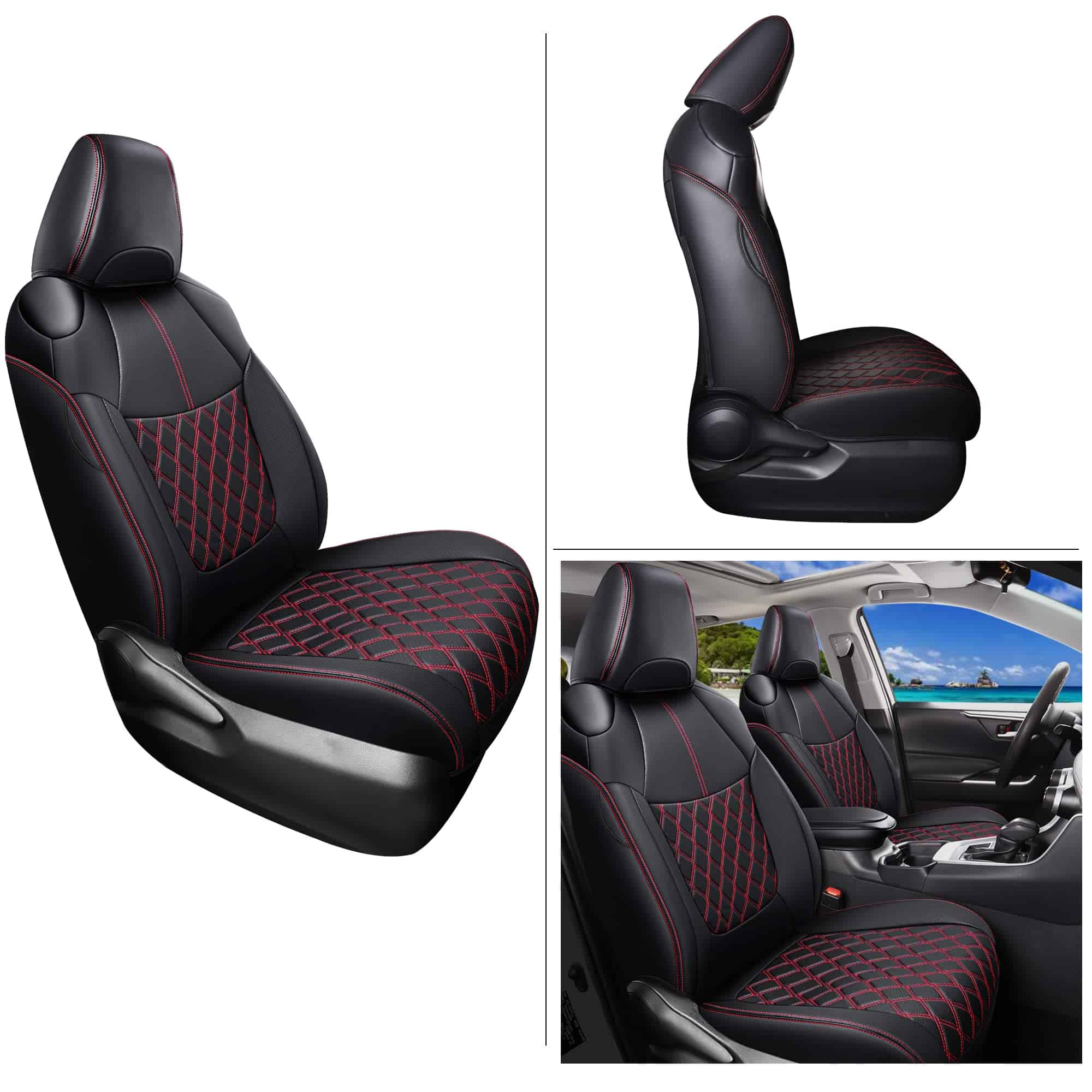 Cubiertas de asiento delantero Huidasource Custom Fit RAV4, Accesorios de interior impermeables para automóviles, se ajustan para Toyota Rav4 XLE LE XLE Premium Limited 19-24 (No para Hybrid/Adventure/TRD Off-Road/Prime, Negro y Rojo). Las cubiertas de asiento personalizadas de cobertura total solo son aptas para Toyota Rav4 LE, XLE, XLE Premium, Limited 2019-2024. Las cubiertas de asiento fabricadas con cuero sintético premium están acolchadas con esponja, tela no tejida, algodón de PP y paño de gamuza, lo que las hace suaves y cómodas. Estas fundas de cojín para asientos de rav4 protegen su asiento de automóvil original de derrames, manchas, polvo, pelos de mascotas y arañazos, y son fáciles de limpiar con un paño húmedo suave. El diseño totalmente incluido de la cubierta del asiento delantero envuelve completamente el asiento del automóvil sin revelar los lados y adopta un elegante diseño en forma de diamante en 3D. Estas fundas de cojín para asientos de rav4 protegen el asiento en todo su contorno mientras refrescan la apariencia de su automóvil, haciendo que su asiento viejo o roto parezca nuevo de nuevo. Los protectores de asiento de coche personalizados para Toyota Rav4 mantienen la función y el control completos del asiento, son ajustables, compatibles con airbag, asiento de seguridad para bebés y hebillas de asiento. Los bolsillos de almacenamiento del asiento delantero están diseñados para almacenar fácilmente cosas como el teléfono celular, revistas, libros y pañuelos. Con correas flexibles, hebillas y ganchos, estas fundas de asiento de cuero personalizadas se pueden instalar rápidamente y fácilmente. Por favor, vea el video de instalación en la séptima imagen y lea el manual adjunto antes de instalar. Cualquier pregunta, por favor, contáctenos sin dudarlo, haremos todo lo posible para resolver su problema