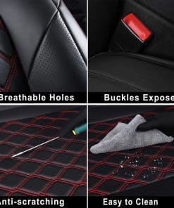 2. Hecho de cuero sintético premium, acolchado con esponja, tela no tejida, algodón de PP y paño de gamuza, estas fundas de cojín para asientos de rav4 son suaves y cómodas mientras protegen su asiento de automóvil original de derrames, manchas, polvo, pelos de mascotas y arañazos. Fácil de limpiar con un paño húmedo suave.