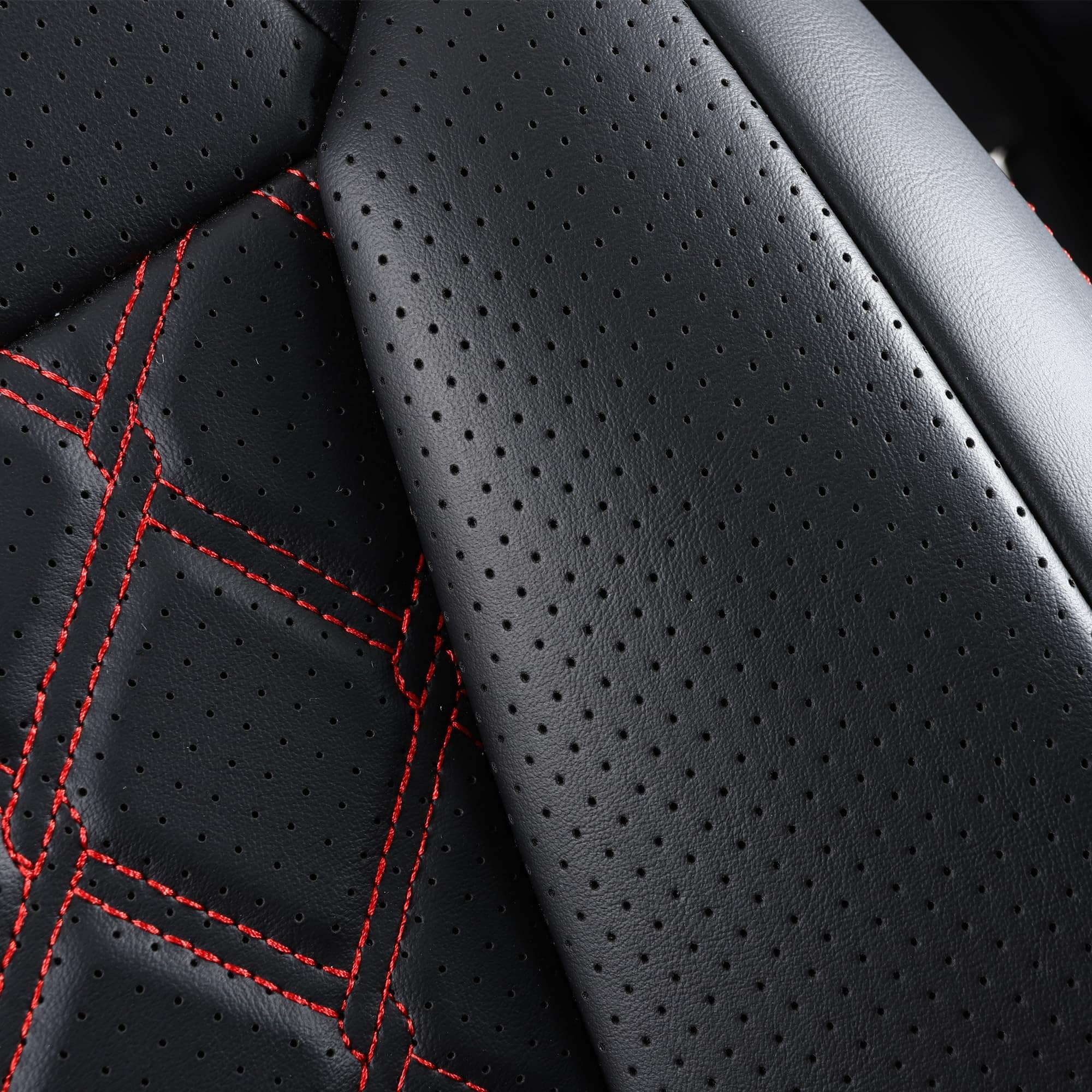 3. Diseño de moda. La cubierta del asiento delantero tiene un diseño totalmente incluido que envuelve completamente el asiento del automóvil sin revelar los lados y adopta un elegante diseño en forma de diamante en 3D, protegiendo el asiento en todo su contorno mientras refresca la apariencia de su automóvil, hace que su asiento viejo o roto parezca nuevo de nuevo.