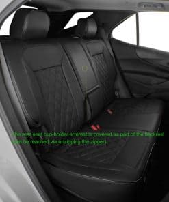 Cree un interior elegante y proteja los asientos de su Chevy Equinox con las cubiertas de asiento EKR Custom Fit. Esta cubierta de asiento de cuero negro está hecha con una construcción de 4 capas que incluye acolchado de espuma y una cubierta protectora de poliéster para mayor durabilidad y comodidad. La capa de piel sintética ofrece una excelente transpirabilidad, resistencia al agua y facilidad de limpieza, lo que garantiza que sus asientos se mantengan en óptimas condiciones durante años. Las costuras están diseñadas para emular el estilo de asiento de fábrica, mientras que las hebillas y cremalleras de alta calidad garantizan un ajuste seguro. Estas cubiertas de asiento están hechas a medida según las especificaciones exactas de los asientos de su vehículo, protegiéndolos de derrames, manchas y daños. La instalación es sencilla y puede hacerlo usted mismo, aunque puede requerir cierto esfuerzo para lograr un ajuste ceñido. Además, estas cubiertas de asiento vienen con una garantía limitada de 2 años contra defectos. Incluye cubiertas para asientos delanteros y traseros, cubiertas para reposacabezas y recortes para airbag.