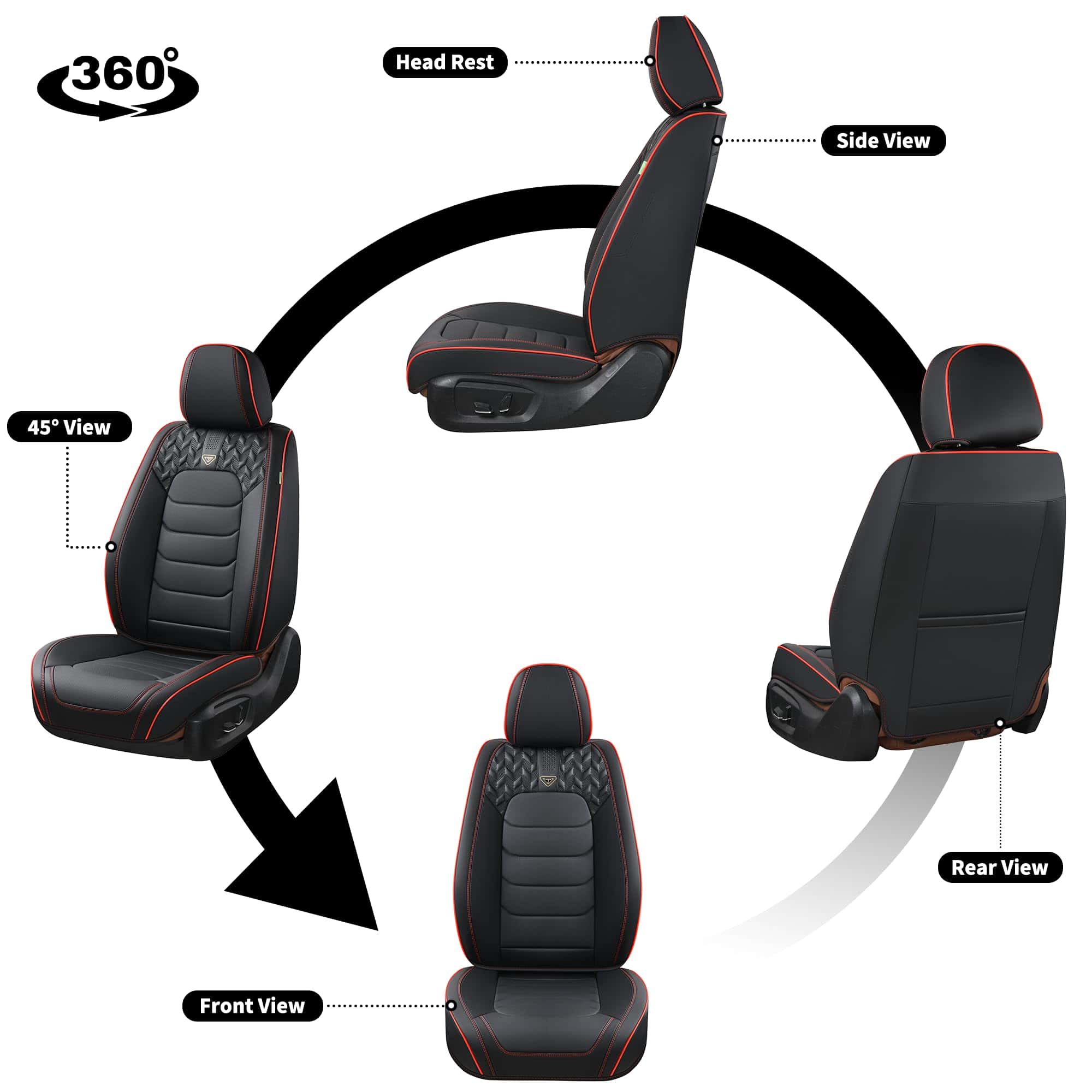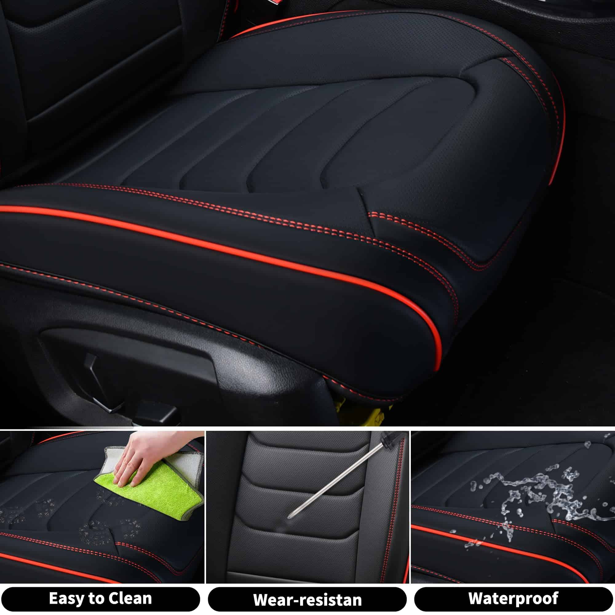 1. : La cubierta de asiento automotriz está hecha de cuero artificial de alta calidad y fabricada con tecnología de material compuesto de varias capas. Es suave y cómoda, impermeable y transpirable, y puede obtener una mejor experiencia de manejo. La cubierta de asiento de cuero falso transpirable adopta una esponja recuperadora que ofrece un toque cómodo y una excelente resiliencia para mantener su forma.