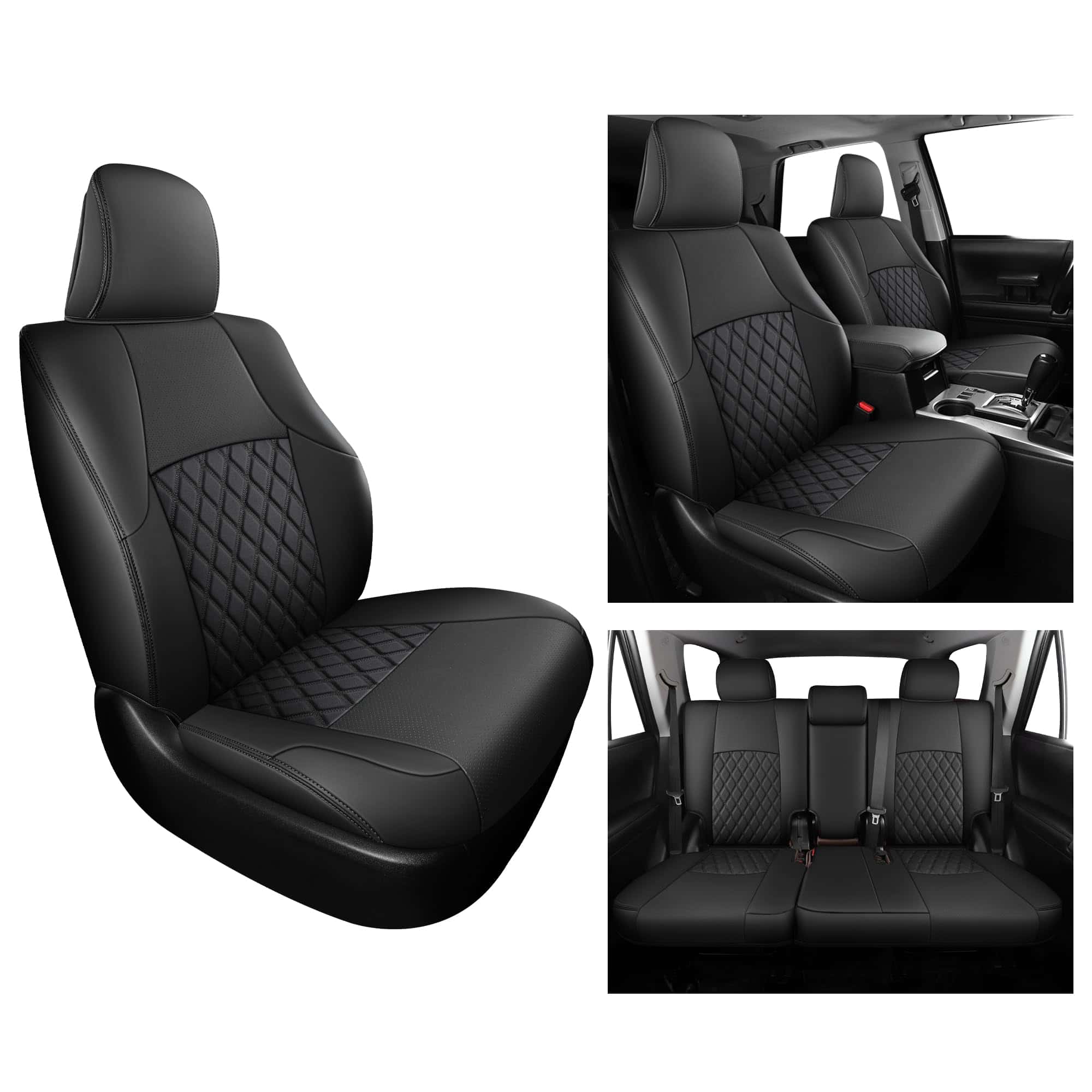 Cubiertas de asiento Huidasource Upgrade para Toyota 4Runner 2011-2024, modelo de 2 filas y 5 asientos solamente. Estas cubiertas de asientos de cuero a medida ofrecen una protección completa para los asientos de su automóvil, manteniéndolos libres de suciedad, desgaste y raspaduras. El paquete incluye una variedad de cubiertas para todos los asientos, reposacabezas, consola y portavasos, asegurando una instalación sencilla y protección total. Hechas de cuero sintético duradero y transpirable, acolchado con esponja y algodón para una comodidad adicional. Las cubiertas son compatibles con airbags, asientos de seguridad para bebés y hebillas de asientos, sin interferir con las funciones originales de los asientos. Fácil de limpiar y mantener, estas cubiertas de asientos son la elección perfecta para mantener sus asientos limpios y protegidos durante muchos años.