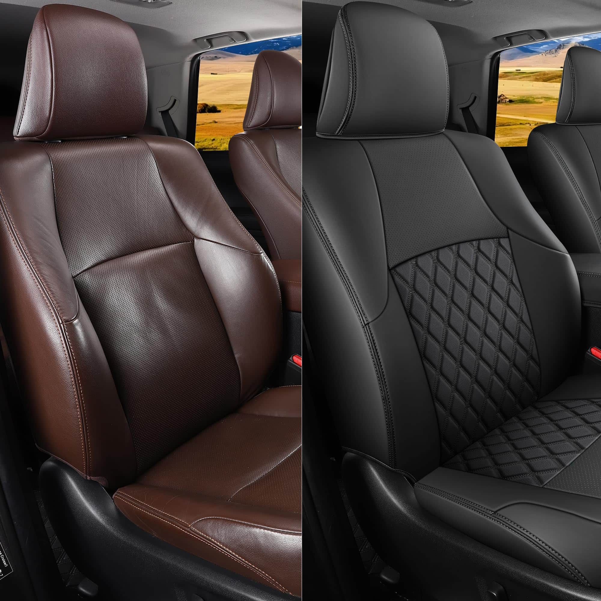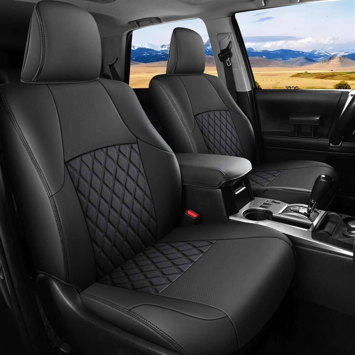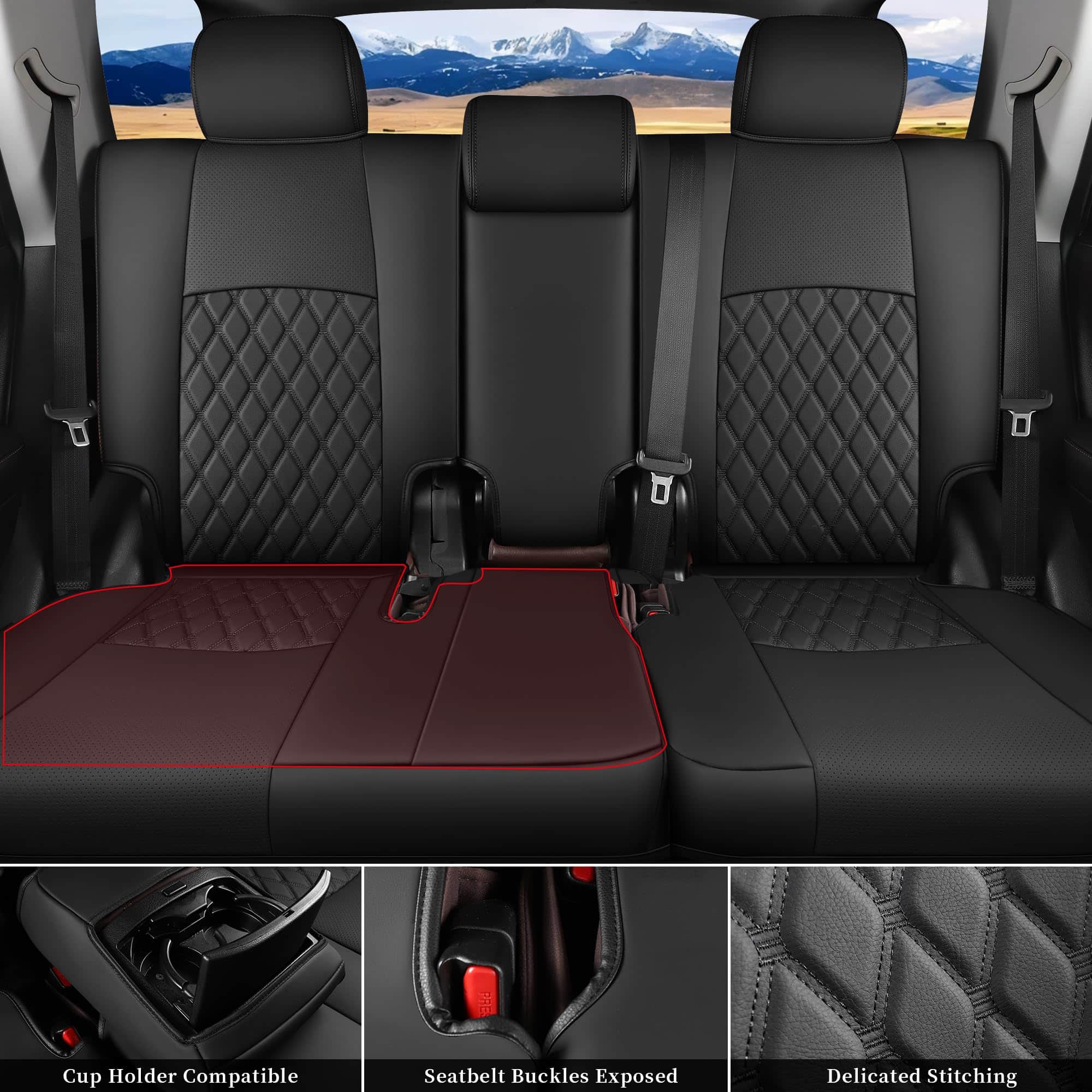 1. Cubiertas de asiento 4Runner a medida para Toyota 4Runner 2011-2024 con modelo de 5 asientos ÚNICAMENTE, NO son compatibles con modelos de 7 asientos. Nota: Las cubiertas de los asientos traseros en 60% están en el lado del pasajero.