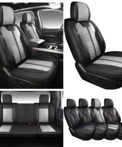 1. Hecho a medida para adaptarse a diferentes camiones Chevy Silverado y GMC Sierra, incluyendo 1500/2500HD/3500HD, Camioneta de Cabina Crew, Cabina Regular y Quad Cab. Apto para LT LZT RST Trail Boss High Country, Work Truck, Z71, ZR2. 2. Hecho con materiales premium, incluyendo cuero PU de alta calidad, capa de esponja gruesa y capa inferior de silicona antideslizante. Duraderas, impermeables y fáciles de limpiar. 3. Diseñadas pensando en la seguridad y la comodidad, las cubiertas de asiento no afectarán el uso de los cinturones de seguridad, airbags, asientos con calefacción o la seguridad al conducir. Proceso de instalación fácil sin necesidad de herramientas. 4. Utiliza la última tecnología de bordado en 3D, haciendo que las cubiertas de asiento se vean elegantes, hermosas y de alta calidad. 5. Viene con garantía del producto y una política de devolución de 30 días. Los clientes pueden contactar al servicio al cliente para servicios de reemplazo de accesorios gratuitos si reciben productos defectuosos o les faltan piezas. Palabras clave: cubiertas de asiento Chevy Silverado, cubiertas de asiento GMC Sierra, cubiertas de asiento para camionetas, modelos Chevy Silverado y GMC Sierra 2006-2024, y años de modelo específicos desde 2004 hasta 2021.