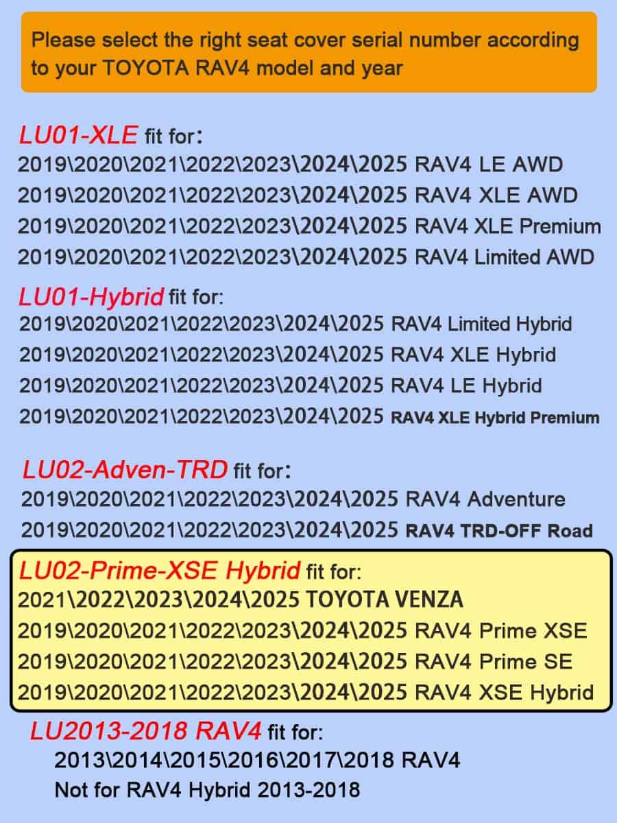 Cubiertas de asiento LuluDa Custom Fit para RAV4 y VENZA
