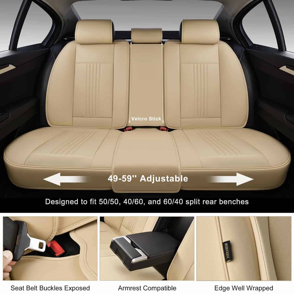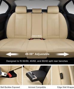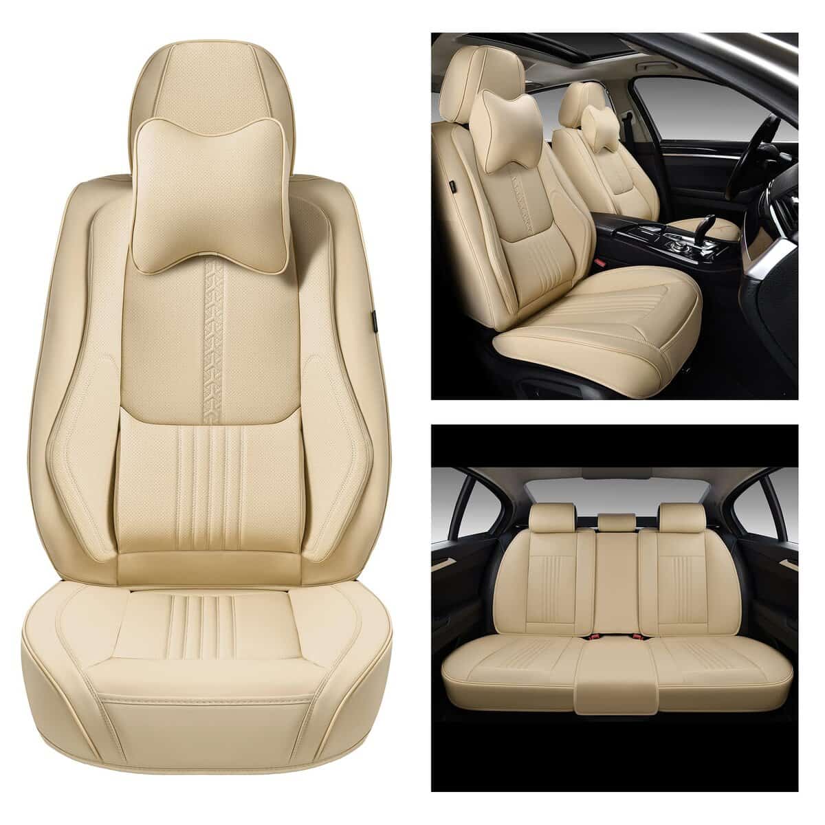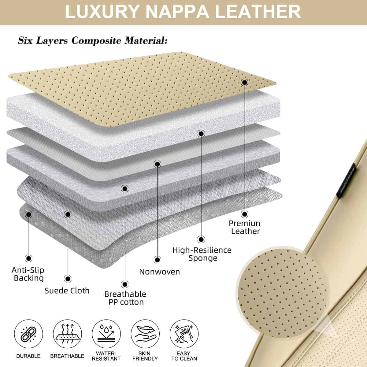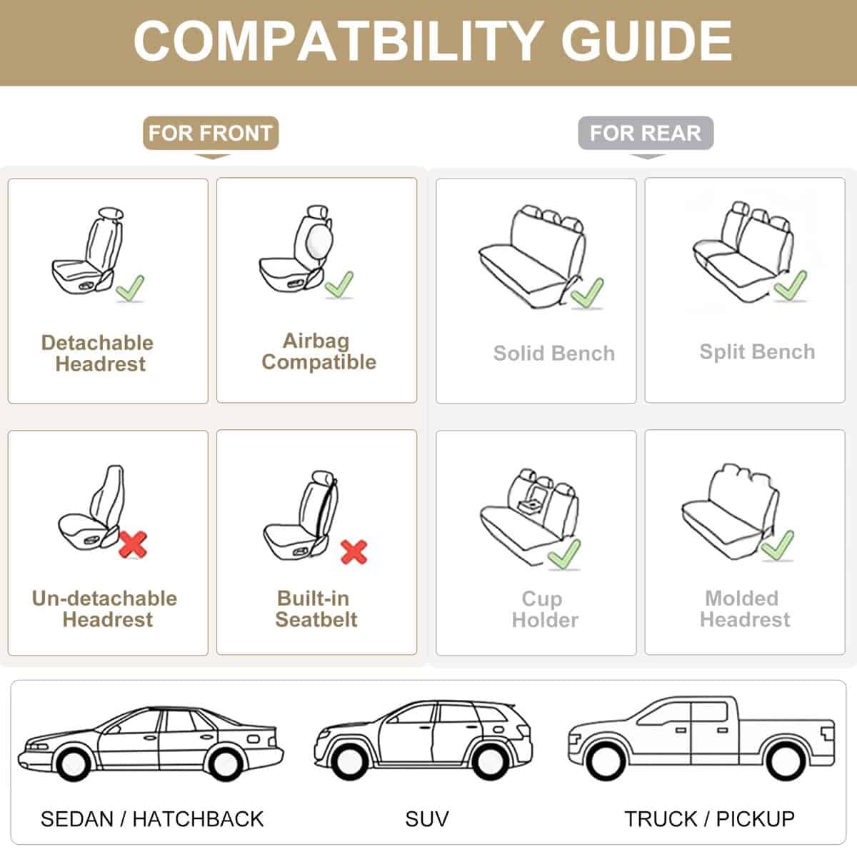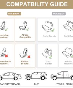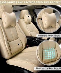 Las cubiertas de asiento para automóvil BWTJF están diseñadas para brindar la máxima comodidad y protección para sus asientos originales. Están hechas de cuero Nappa compuesto de alta calidad que ofrece resistencia superior y durabilidad. El tratamiento lumbar ergonómico más grueso ayuda a proporcionar un mejor soporte lumbar durante largos viajes en automóvil. Cada cubierta para el asiento delantero viene con una almohada extra para la cabeza, que proporciona apoyo adicional para el cuello mientras conduce. El diseño único con botón superior y cremallera lateral permite un ajuste fácil y una instalación rápida. Las cubiertas de asiento delantero también cuentan con bolsas de almacenamiento en la parte delantera y trasera para mayor comodidad. Son compatibles con airbags y cinturones de seguridad, manteniendo intacta la funcionalidad del asiento. Los puntos de silicona antideslizantes en la parte posterior mantienen el cojín en su lugar al entrar y salir del automóvil. Cada paquete viene con cubiertas de asiento completas para las filas delanteras y traseras, una bolsa de hardware con ganchos y chavetas, y un manual de instalación para una fácil instalación. Están diseñados para adaptarse a la mayoría de los vehículos, incluidos sedanes, camionetas, furgonetas y SUV. Por favor, confirme la compatibilidad con su vehículo antes de realizar la compra.
