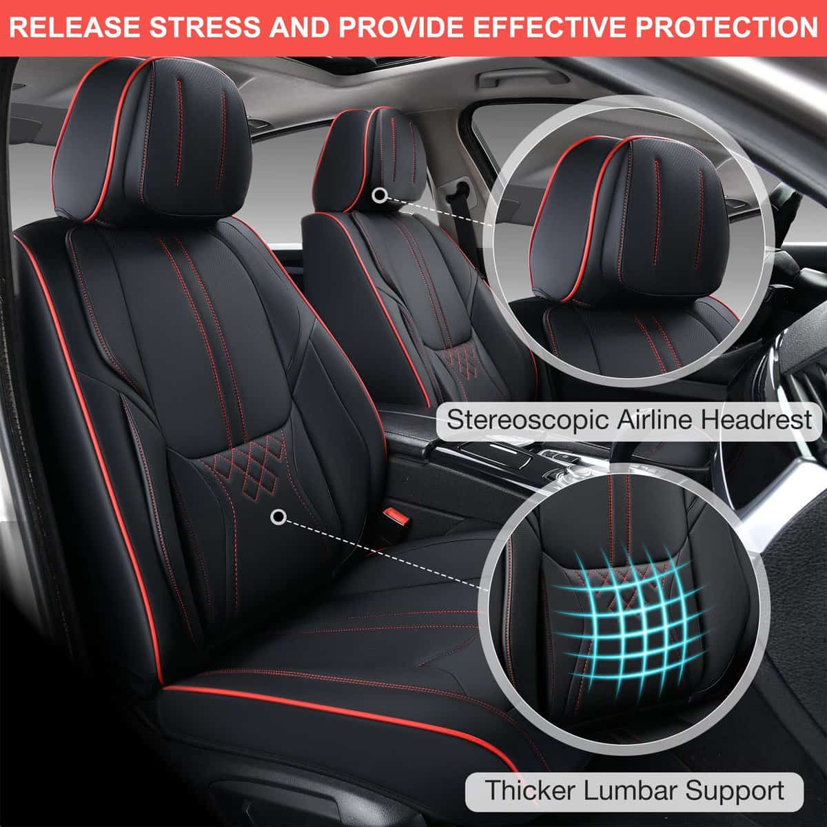 2. Proporciona Protección Efectiva: El tratamiento lumbar más grueso está diseñado ergonómicamente para proporcionar un mejor soporte lumbar. El reposacabezas aéreo estereoscópico brinda soporte para tu cuello mientras el auto se mueve hacia adelante, lo que puede ayudar a liberar el estrés y el cansancio durante la conducción.
