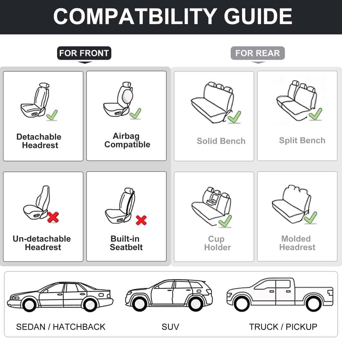 Cubiertas de asiento para automóvil BWTJF, -Negro