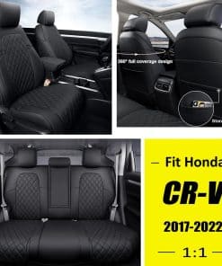 Un juego de cubiertas de asiento personalizado para Honda CR-V EX,EXL,LX,Touring,Hybrid 2017-2022, que se adapta perfectamente al asiento original. Es una solución perfecta y económica para actualizar el interior del coche. Estas cubiertas de asiento para automóvil están hechas de cuero suave, cómodo al tacto, con buena transpirabilidad, durabilidad, resistencia al agua y fácil limpieza. Las cubiertas de asiento completas están estrictamente personalizadas según el tamaño de los asientos originales, cubriéndolos con precisión, protegiendo los asientos originales de desgaste, manchas y cabello de animales, y dándole a tu interior de coche un aspecto nuevo. Tanto la cubierta del asiento delantero como la del asiento trasero muestran una rica visión estereoscópica con un diseño acolchado en forma de diamante y decoración de costuras, simple y elegante, y se integran perfectamente con el interior de tu coche. Para una fácil instalación, por favor mira cuidadosamente el video de instalación antes de instalar. Las cubiertas de asiento personalizadas de GIANT PANDA con solapa de paso, Velcro, hebillas resistentes y correas para un ajuste más apretado, seguro y una instalación más sencilla.