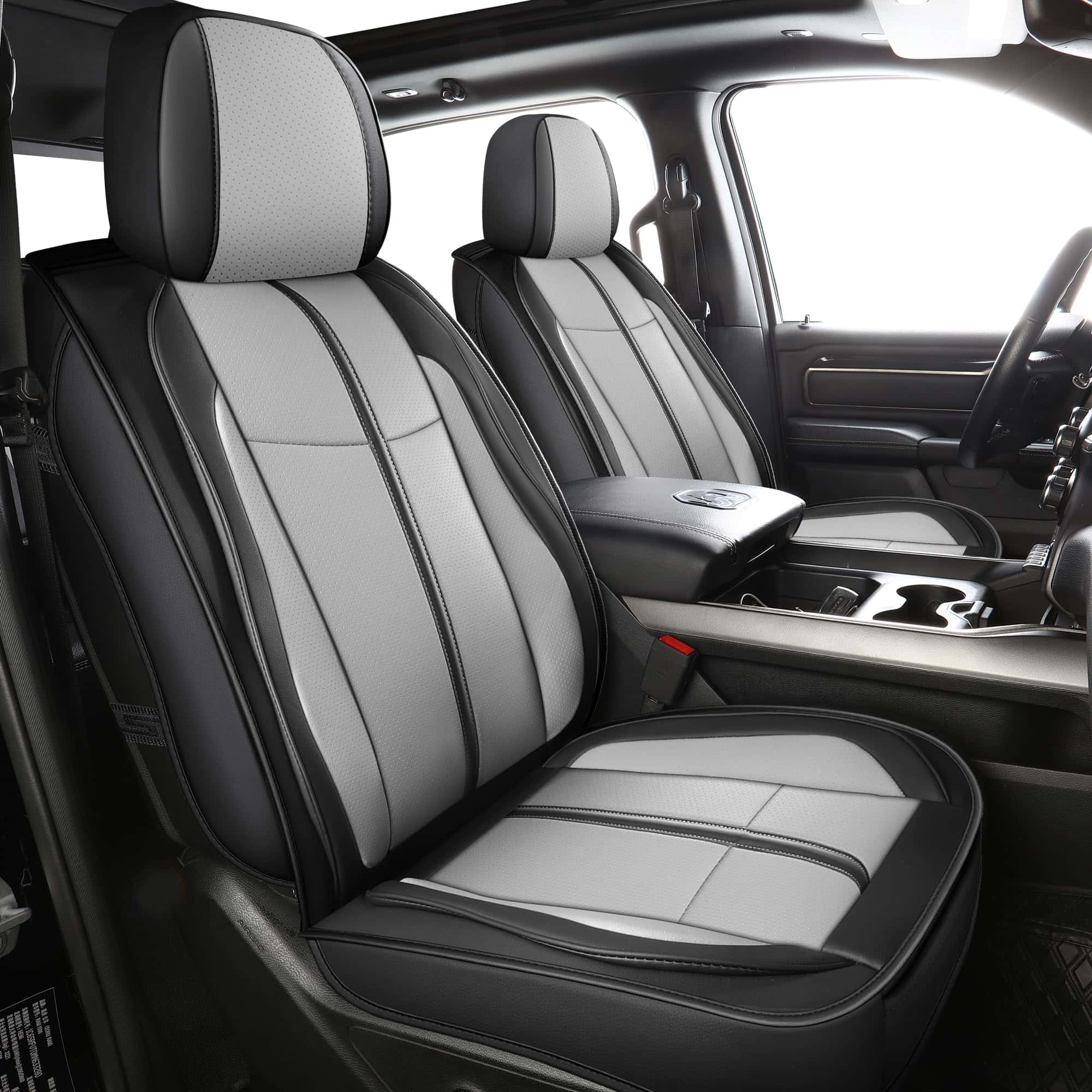 1. AJUSTE PERSONALIZADO: El paquete incluye 2 cubiertas de asiento delanteras y una cubierta de asiento trasera, las cuales son compatibles con Dodge Ram 1500 2009-2025 2500 3500 Crew cab, Double cab, Quad cab, Regular cab y Mega cab.