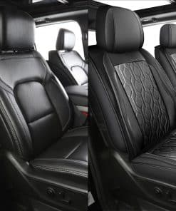 1. AJUSTE PERSONALIZADO: El paquete incluye 2 cubiertas de asiento delanteras, que son compatibles con Chevy Silverado 1500 GMC Sierra 1500 2007-2025.