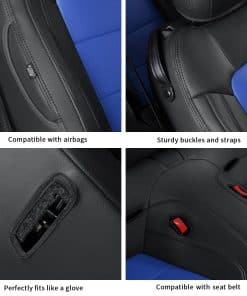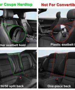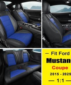 Un juego completo de cubiertas de asiento a medida para Ford Mustang Coupe Hardtop 2015 2016 2017 2018 2019 2020 2021 2022 2023 2024 2025, que se ajusta perfectamente a los asientos originales como un guante. Es una solución perfecta y económcia para proteger el interior del automóvil. Estas cubiertas de asientos para automóviles están hechas de piel sintética suave, que es cómoda al tacto, transpirable, duradera y fácil de limpiar. La piel perforada en la parte del cojín es compatible con las funciones de calefacción y refrigeración del asiento original. Estas cubiertas de asientos coupe Mustang hardtop están diseñadas a la medida del asiento original, cubriendo con precisión los asientos originales, protegiéndolos del desgaste, manchas y pelo de animales, y dándole un nuevo aspecto al interior de su automóvil. La cubierta del asiento está diseñada de acuerdo a la costura del asiento original del automóvil, simple y elegante, y combina perfectamente con el interior de su automóvil. Para una instalación fácil, por favor vea el video de instalación cuidadosamente antes de instalar. Las cubiertas de asientos personalizadas GIANT PANDA cuentan con una solapa de paso, Velcro, hebillas resistentes y correas para un ajuste más apretado, más seguro y una instalación más fácil. Si tiene alguna pregunta, contáctenos para obtener más ayuda.