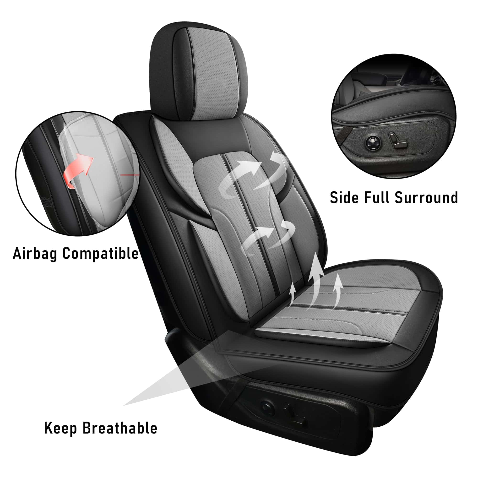 3. MANTENER LA FUNCIONALIDAD: Las fundas de asiento mantienen la funcionalidad y control del asiento, como no afectar el uso del airbag, apoyabrazos, cinturón de seguridad y ajustes de asiento.