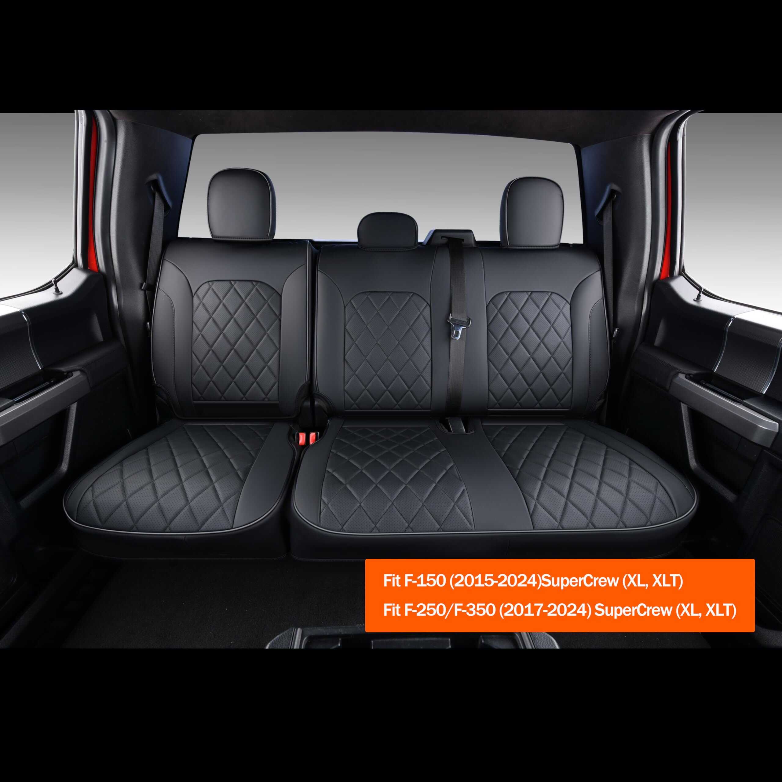 Cada cubierta de asiento F-150 está elaborada con piel sintética y una capa acolchada de algodón, lo que proporciona resistencia al calor y transpirabilidad. Además, cuenta con un diseño de fondo antideslizante para ofrecer resistencia al agua y protección adicional.