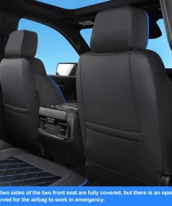 2. Todas las Cubiertas FRONTALES DE LOS ASIENTOS – Incluyendo 2 cubiertas inferiores, 2 cubiertas traseras, 2 cubiertas para reposacabezas, sin cubierta para consola central. ASIENTOS TRASEROS – Incluyendo 2 cubiertas inferiores, 2 cubiertas para respaldo, 2 cubiertas para reposacabezas. Los asientos traseros 40/60 están cubiertos de forma independiente, se pueden plegar fácilmente hacia arriba/abajo como los asientos originales. Todos los lados están cubiertos.