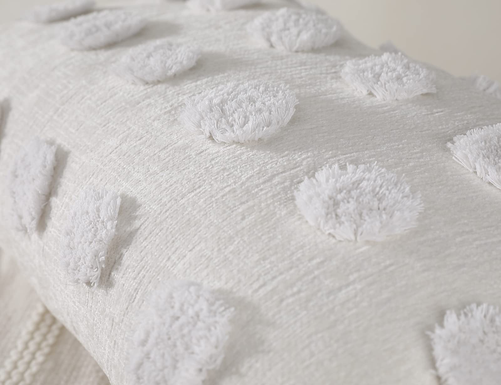 1. SOFT AND THICK CHENILLA FABRIC – Funda de almohada de chenilla blanco crema suave y grueso, algodón blanco nieve con mechones, muy suave al tacto y para acostarse.