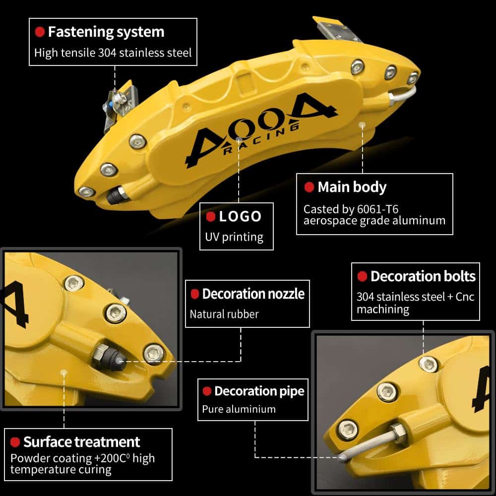 3. SOPORTE DE PATENTE: La cubierta de pinza de freno AooA puede pasar pruebas estrictas de seguridad y calidad, promover la disipación de calor, garantizar la seguridad de la conducción, y también colaborar con muchos fabricantes de automóviles.