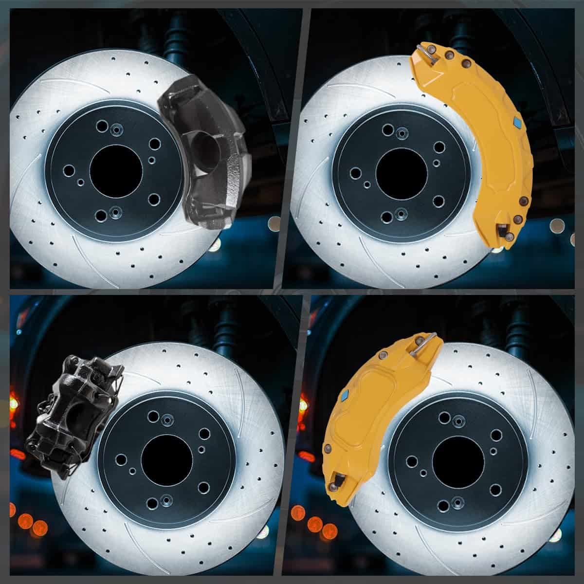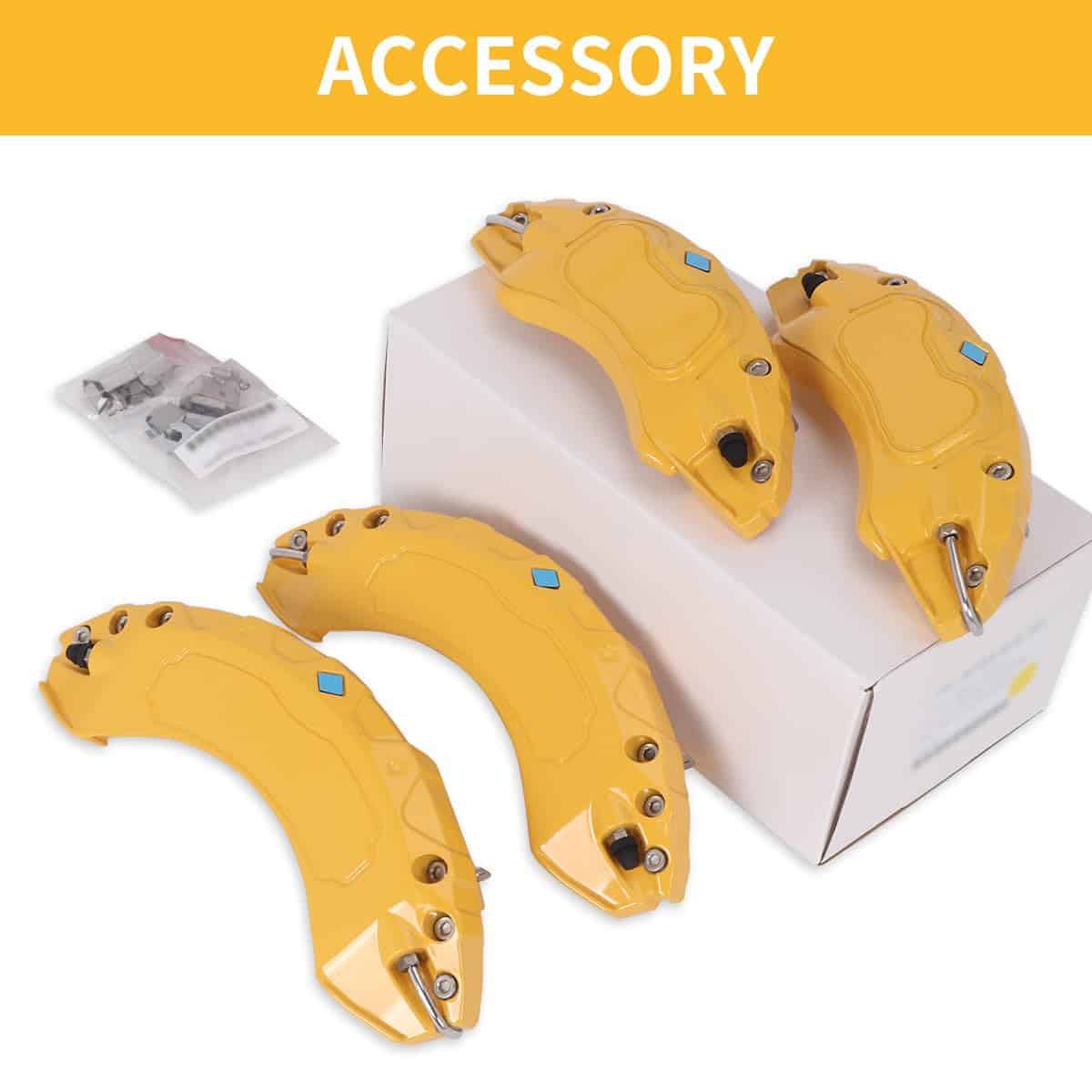 3. Combinación: Las cubiertas de pinza de freno están disponibles en rojo y amarillo, con un tratamiento superficial brillante para hacer que tu automóvil se vea genial.