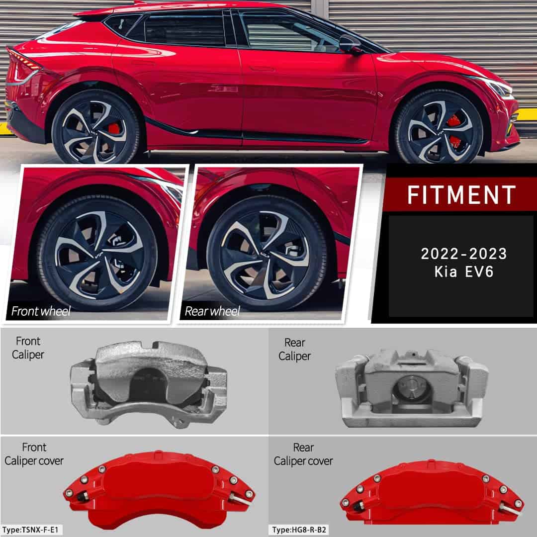 Cubiertas de pinza de freno de aluminio rojas AOOA diseñadas para adaptarse a los modelos Kia EV6 GT-line/Wind/Hyundai Ioniq 5/Ioniq 6 2022-2023. Estas cubiertas de pinza de freno de alta calidad están emparejadas con clips de acero inoxidable específicos para el vehículo y recubiertas de polvo para garantizar la durabilidad y mejorar la apariencia de tus ruedas. Su instalación es extremadamente sencilla y las instrucciones detalladas incluidas explican claramente cada paso del proceso. Las cubiertas de pinza AooA han pasado rigurosas pruebas de seguridad y calidad, promoviendo la disipación del calor y garantizando la seguridad al conducir. Disponibles en varios modelos y colores para que puedas personalizar el aspecto de tu auto. ¡Eleva el estilo de tu vehículo con estas cubiertas de pinza de freno de aluminio rojas de AooA!