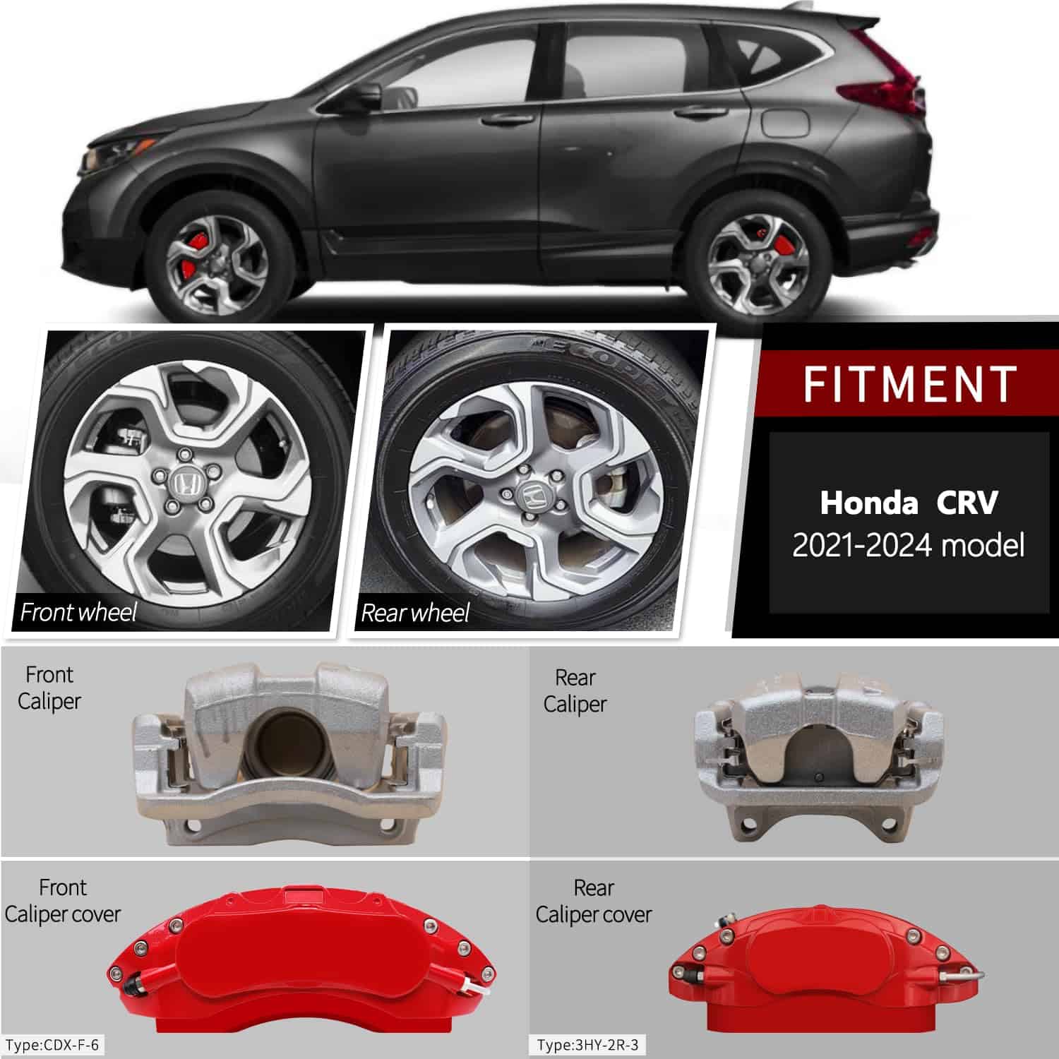 Cubiertas de pinza de freno rojas de aluminio AOOA diseñadas para adaptarse a Honda CRV 2017-2024 Versión de gas. Estas cubiertas de pinza de freno de alta calidad están emparejadas con clips de acero inoxidable específicos para el vehículo y recubiertas de polvo para mejorar la apariencia de las ruedas de tu vehículo. Son fáciles de instalar, con instrucciones detalladas que explican claramente cada paso. La cubierta de pinza de freno AooA cuenta con soporte de patente y ha pasado rigurosas pruebas de seguridad y calidad para promover la disipación del calor y garantizar la seguridad en la conducción. Ofrecemos una variedad de modelos y colores para que puedas elegir el que mejor se adapte a tu estilo. ¡Haz que tu coche luzca más hermoso con las cubiertas de pinza de freno rojas de aluminio AOOA!