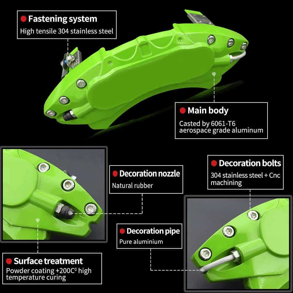 Cubiertas de pinza de freno verde de aluminio AOOA para