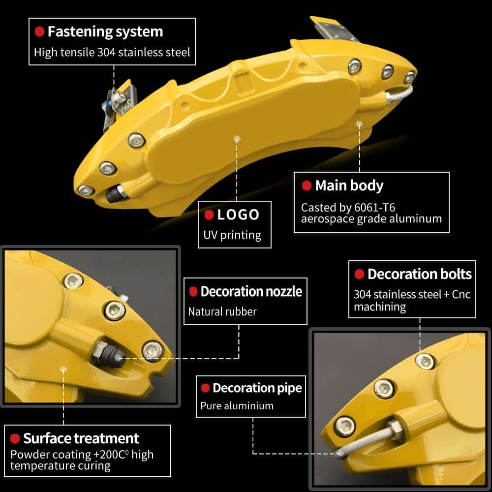 Cubiertas de pinzas amarillas de aluminio para frenos AOOA