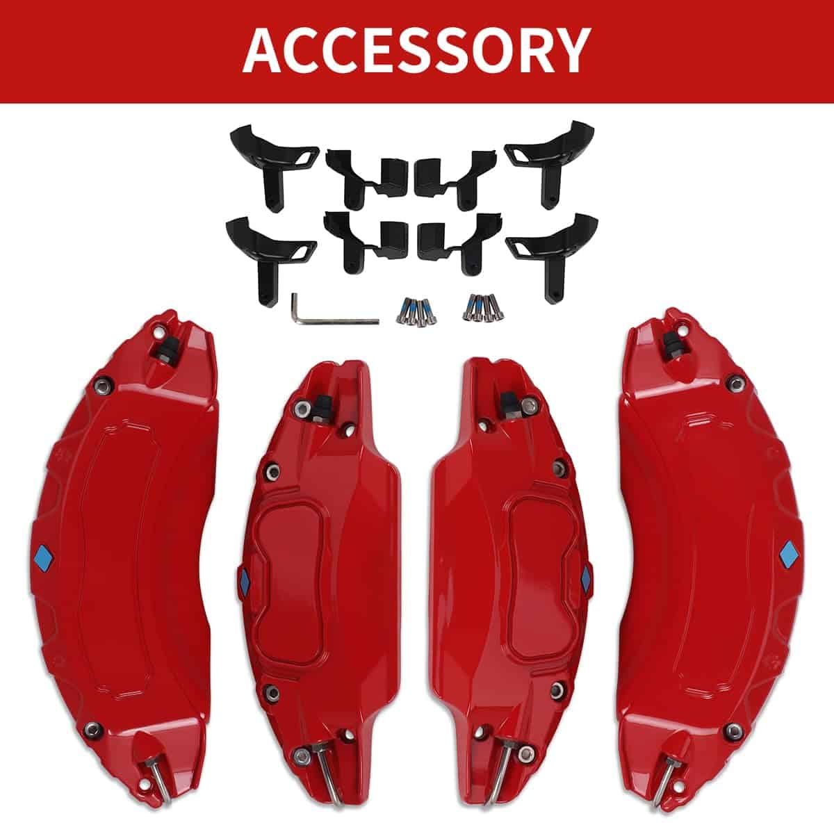 3. Combinación: Las cubiertas de pinzas de freno están disponibles en rojo y amarillo, con un tratamiento de superficie brillante para que tu coche se vea genial.